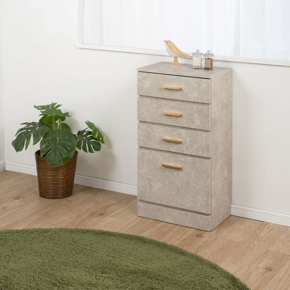 カウンター下収納 スリムチェスト 幅45cm 4段 大理石調 ( チェスト JOLI ジョリシリーズ 組み合わせ カウンター下 収納 薄型 奥行スリム 4杯 引き出し キッチン収納 大理石柄 )