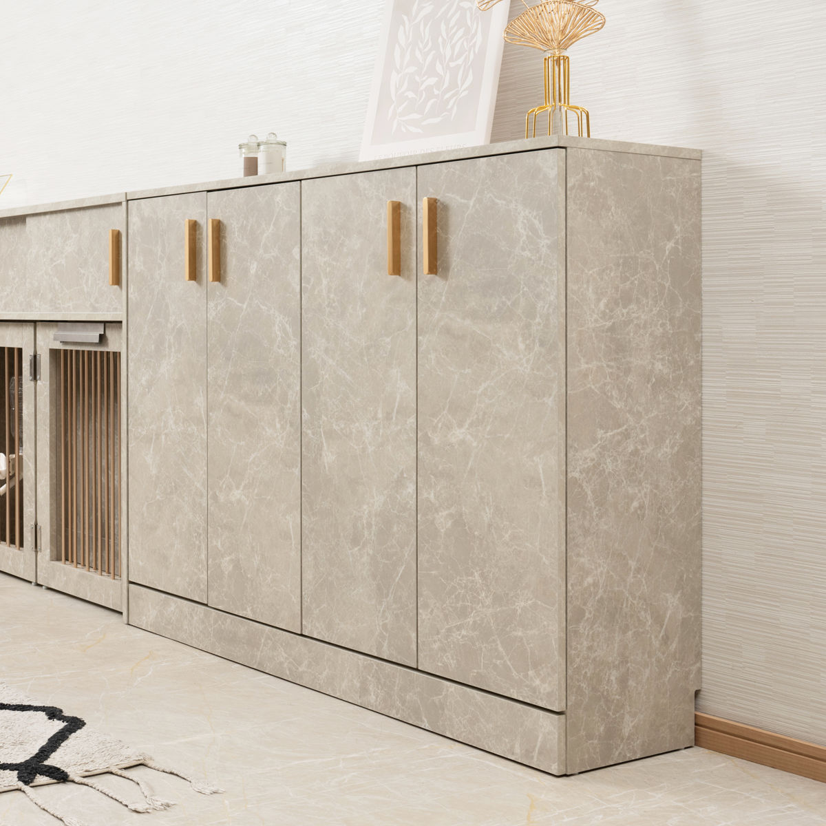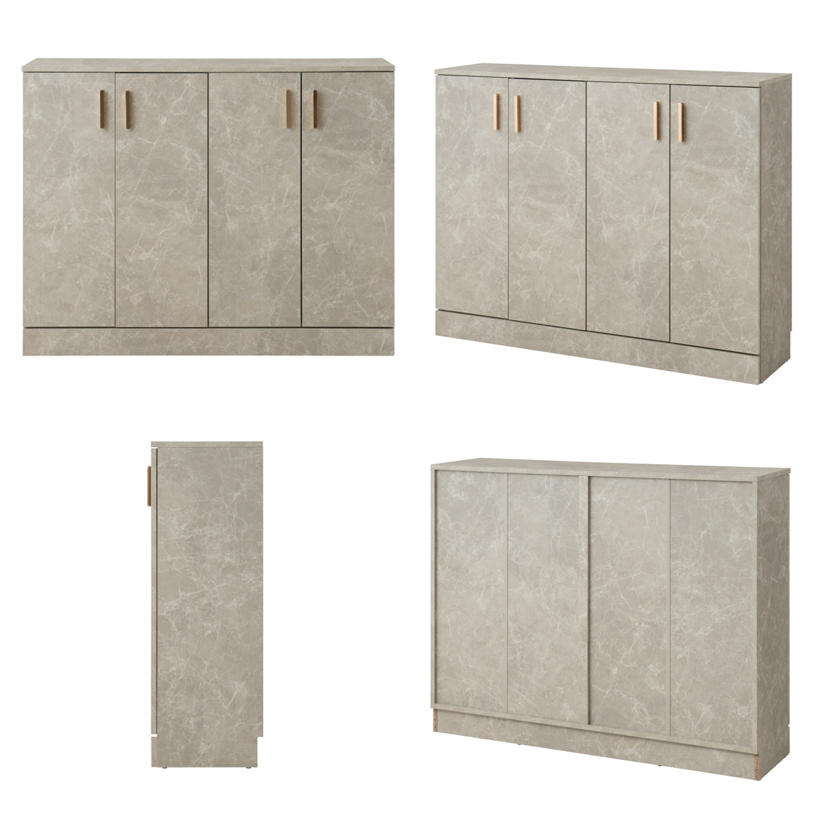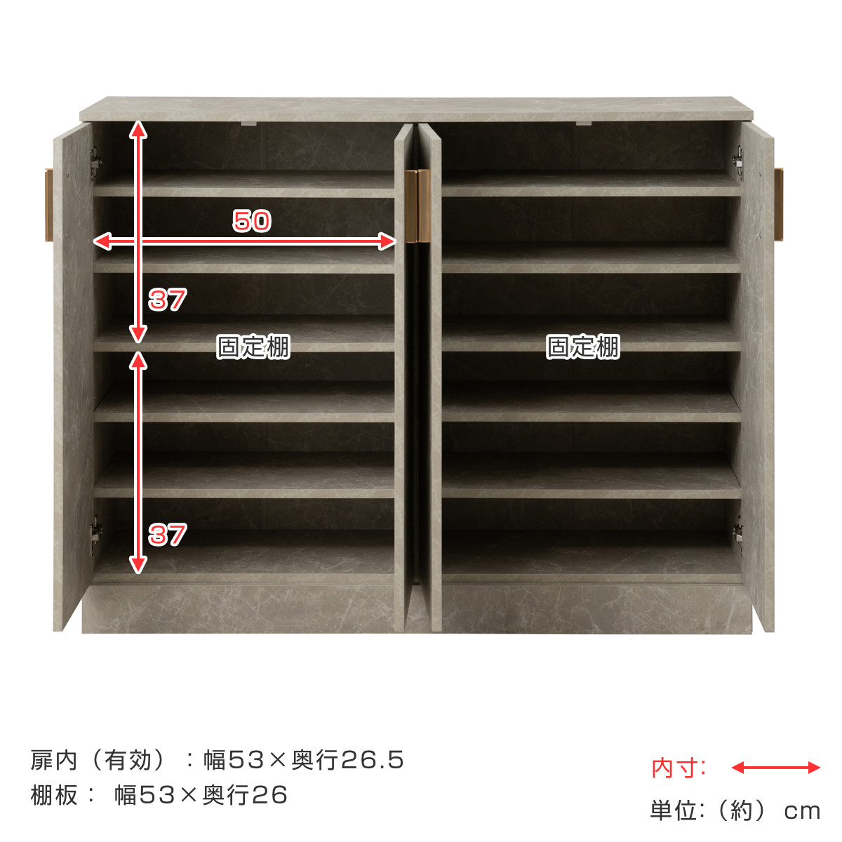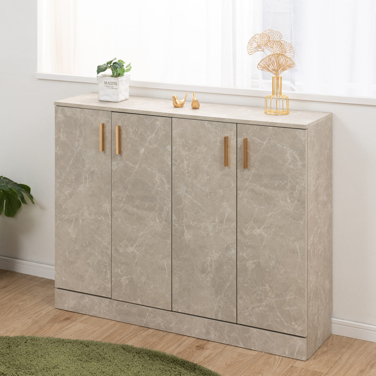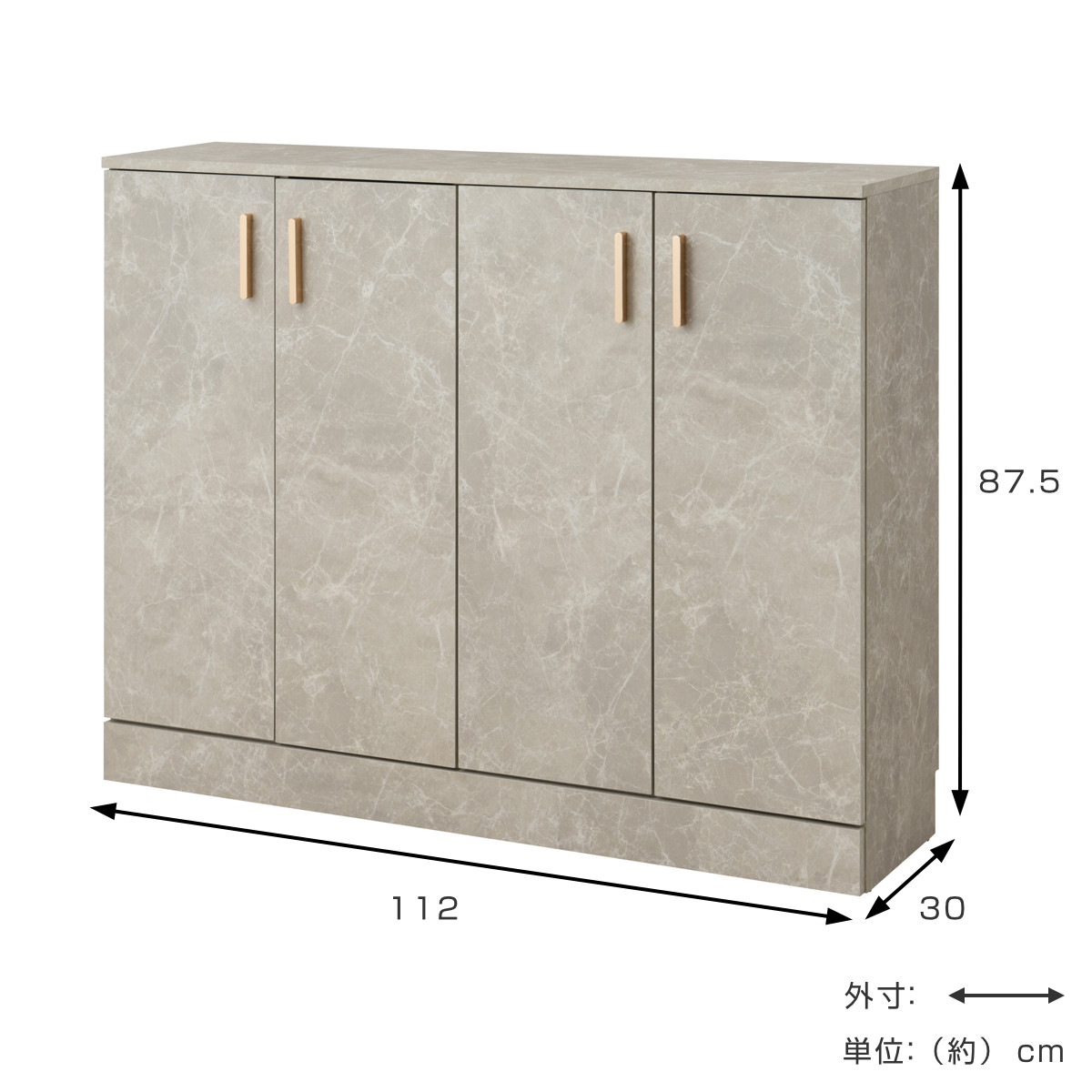 カウンター下収納 キャビネット 幅112cm 扉4枚 大理石調 ( JOLI ジョリシリーズ 組み合わせ カウンター下 収納 薄型 奥行スリム 可動棚 キッチン収納 大理石柄 )