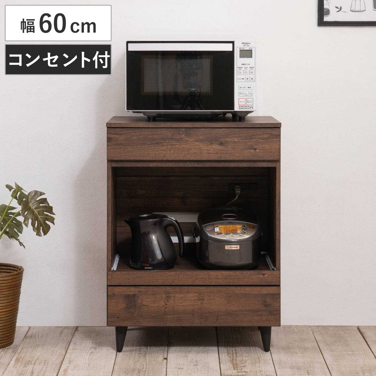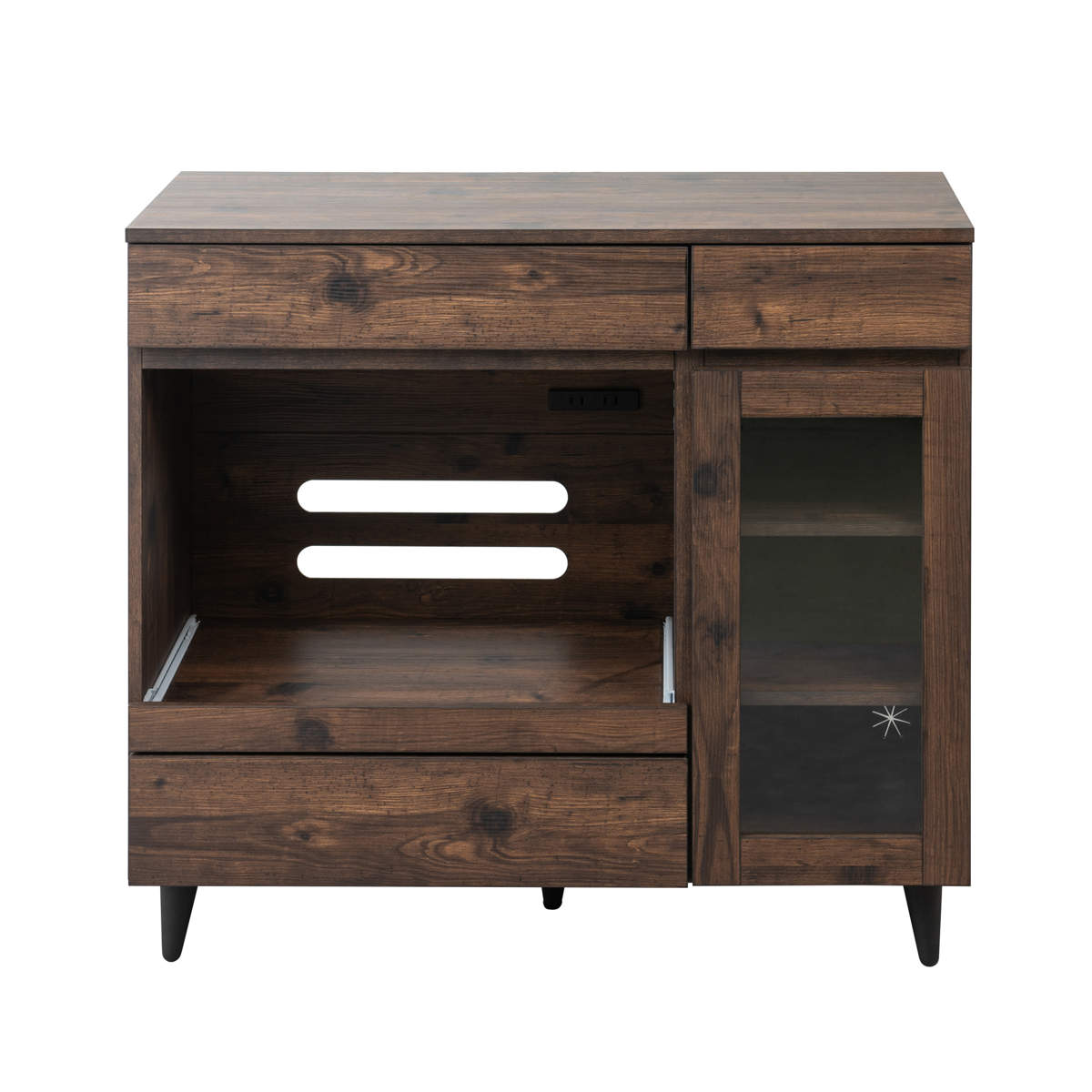 キッチンカウンター 幅90cm レンジ台 スライド棚 2口コンセント Arizona ( アリゾナ カウンター レンジボード コンセント付 組み合わせ キッチン収納 ヴィンテージ調 引き出し 3杯 可動棚 シンプル )