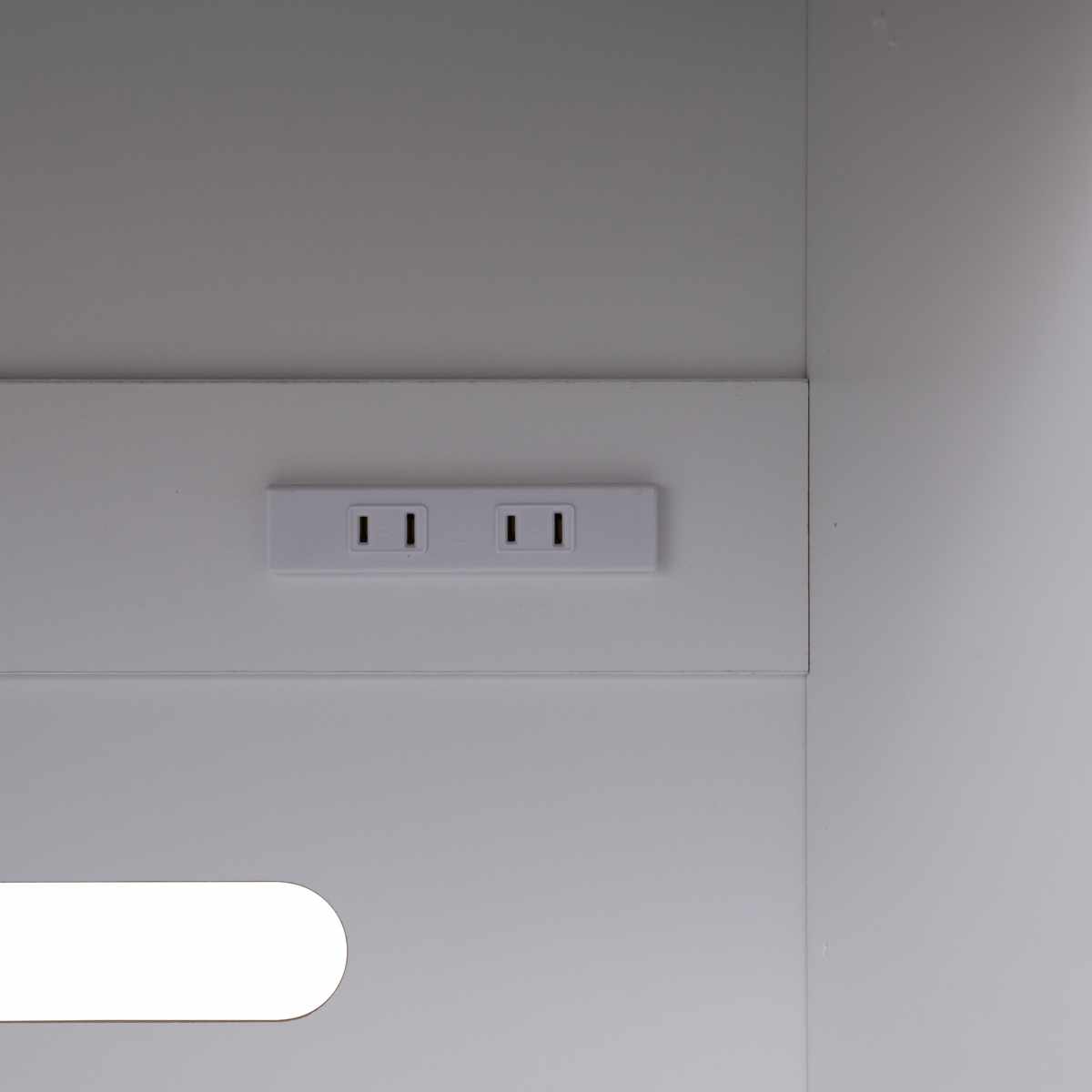 スライド棚の後方に2口コンセントが付いているので、家電製品の配線がキレイに収まります。