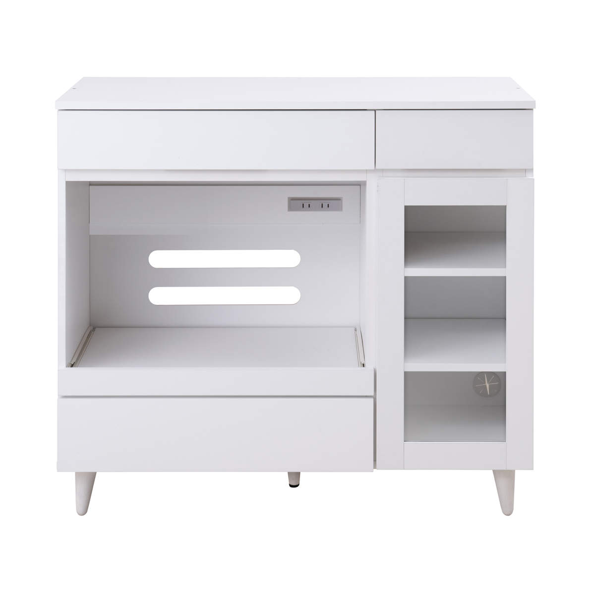 キッチンカウンター 幅90cm レンジ台 スライド棚 2口コンセント ホワイトリヴ ( Whiteliv カウンター レンジボード コンセント付 組み合わせ キッチン収納 ホワイト 引き出し 3杯 可動棚 シンプル )