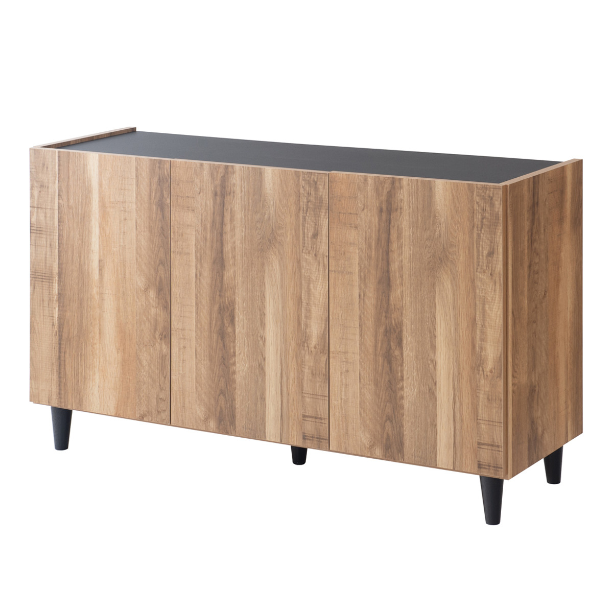 使い込まれた雰囲気によく似合う、ヴィンテージ調デザインのキャビネットです。ブラックの水性塗料でカラーリングした天然木製の脚部が、スタイリッシュでアクセントとなっています。