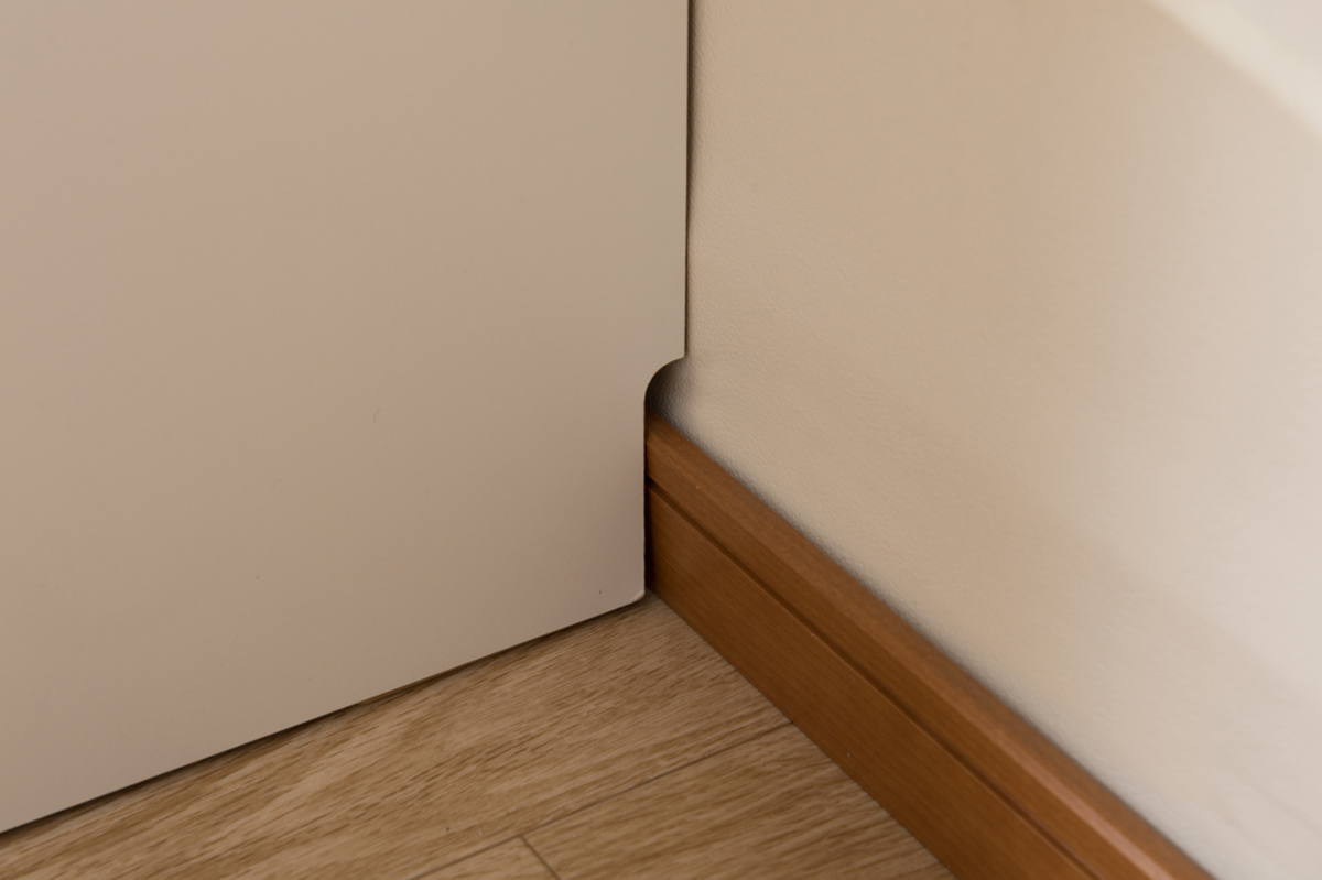 後方下部には幅木よけ加工が施されています。幅木を避けることができるので、壁にぴったりと付けて設置できます。