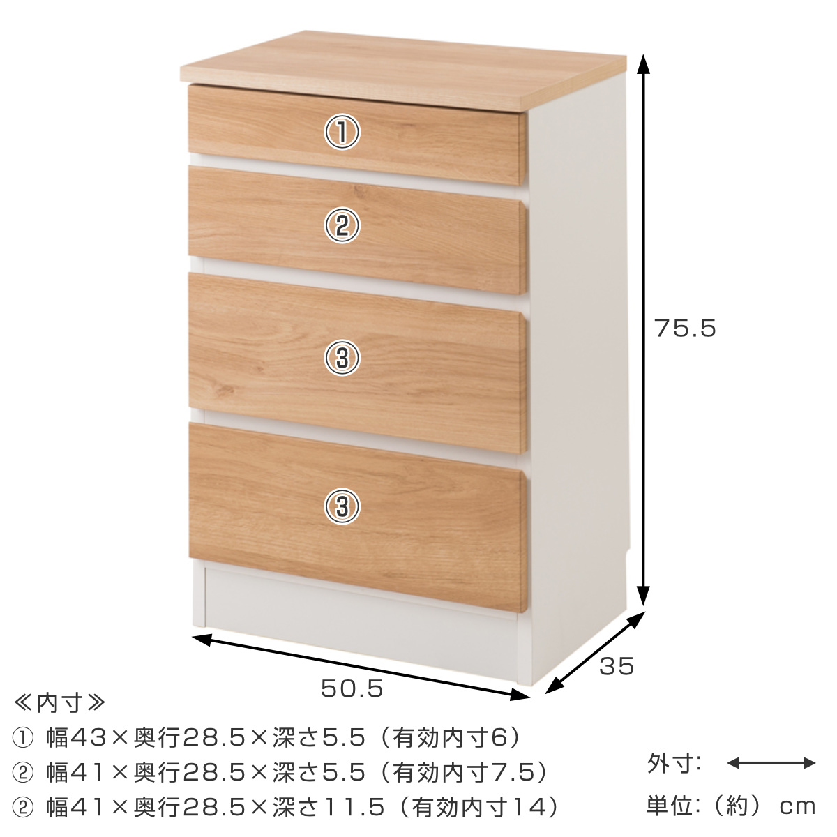 スリムチェスト 幅50.5cm 4段 カウンター下収納 GYMシリーズ 日本製 完成品 ( チェスト ジムシリーズ 組み合わせ カウンター下 収納 薄型 奥行スリム 4杯 引き出し キッチン収納 スライドレール )