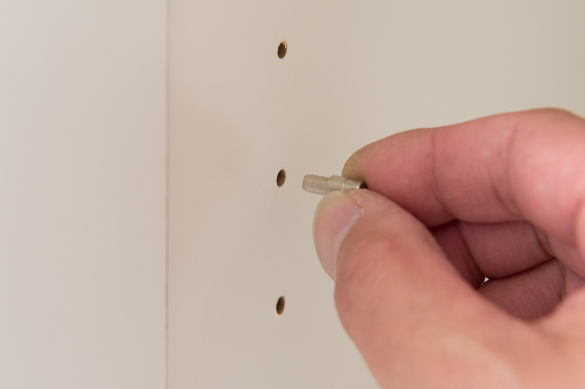 開き扉内の棚板は可動式です。収納したい物に合わせて棚板の高さを調節できるので、雑誌やA4サイズの書類も収納できます。