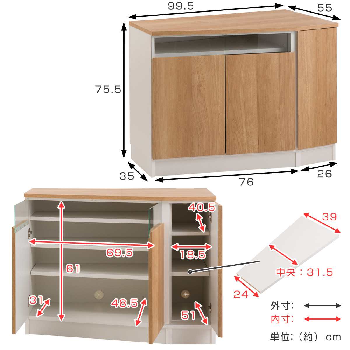 | 内容量 | 1台 付属品:可動棚大3枚、小2枚 |