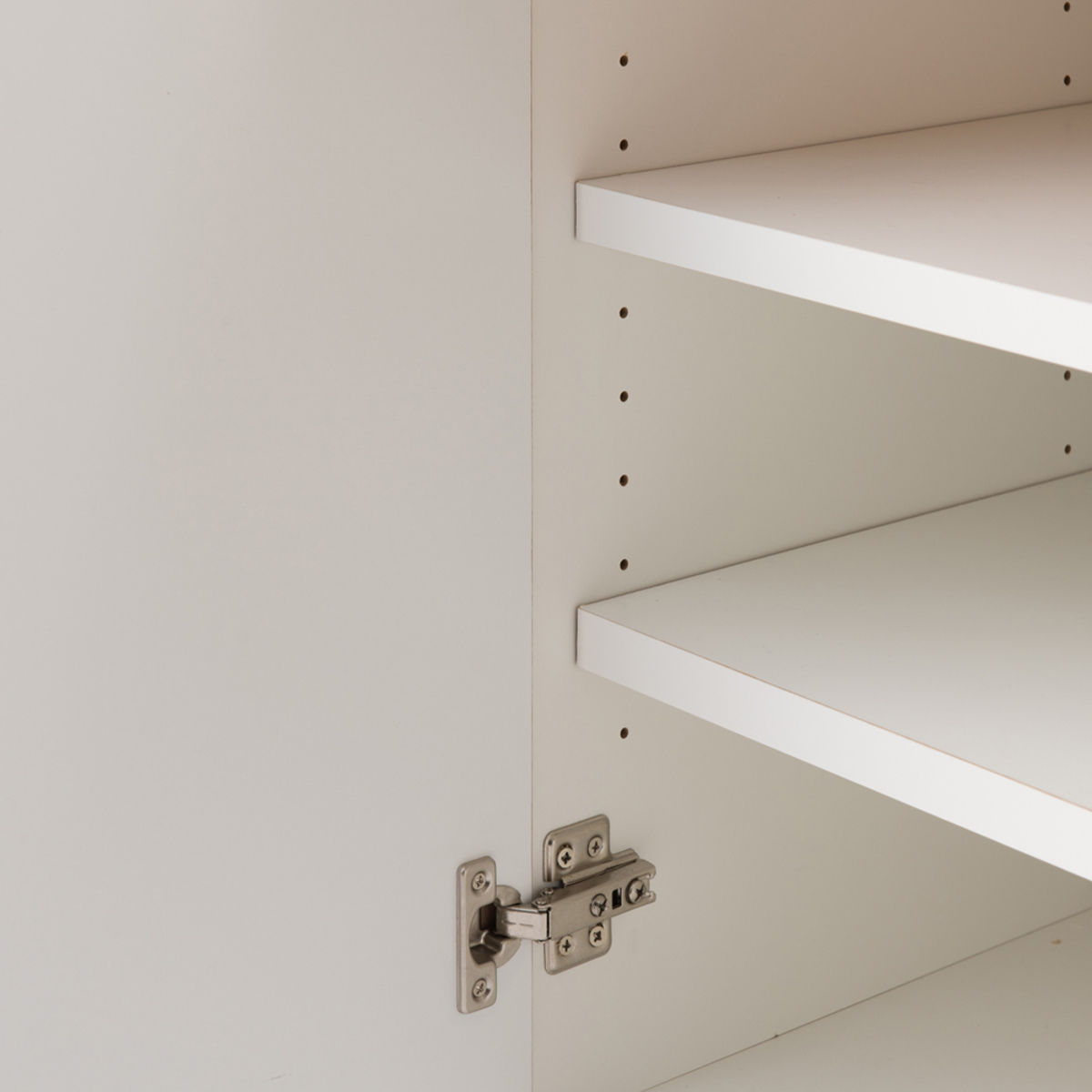 開き扉内の棚板は可動式です。収納したい物に合わせて棚板の高さを調節できるので、雑誌やA4サイズの書類も収納できます。