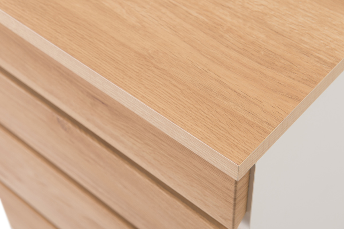 お部屋のコーナーを有効に使えるカウンター下収納、GYM(ジム)シリーズ。シンプルな中に、少しこだわりをアクセントにスパイスを効かせたナチュラルなデザインです。ホワイトのベースにリアルな木目調のシートを貼り、清楚な高級感を生み出しています。