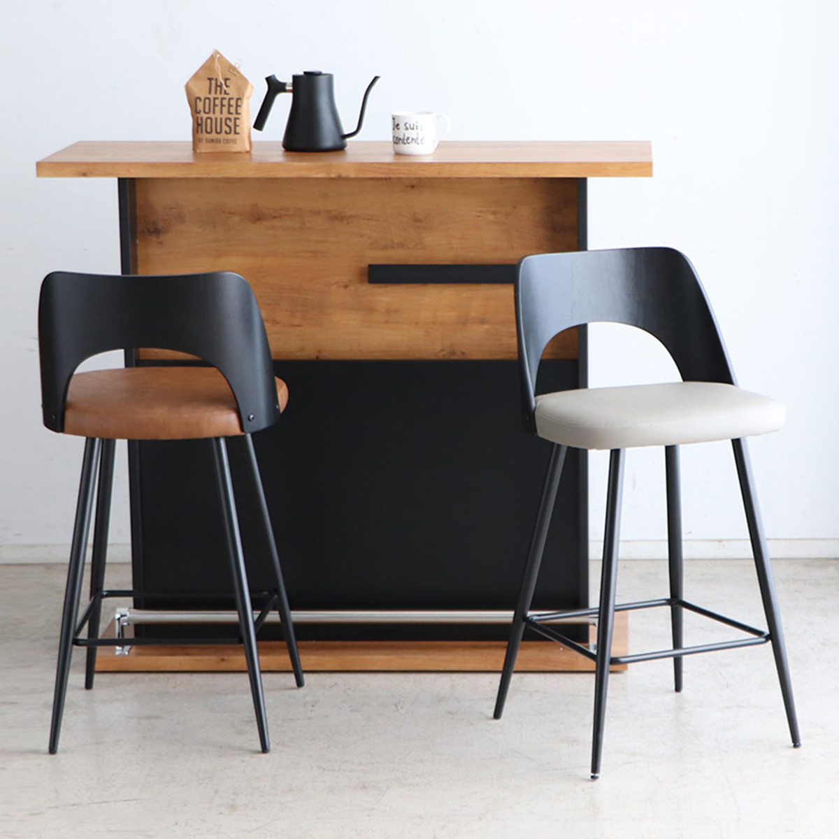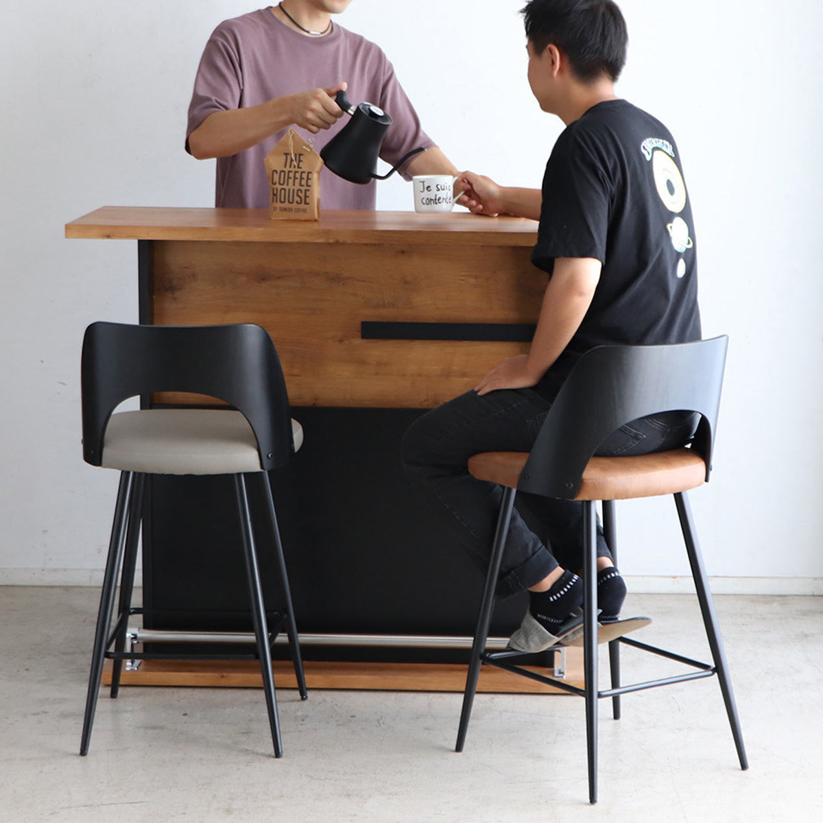 上品でなめらかなフォルムが美しいバーチェアです。木目調の背もたれとPUレザーの異素材を合わせたオシャレなデザインです。チェアとカウンターを合わせると自宅でもバーの空間に変えられ、家族や友達たちと楽しい時間を過ごせます。