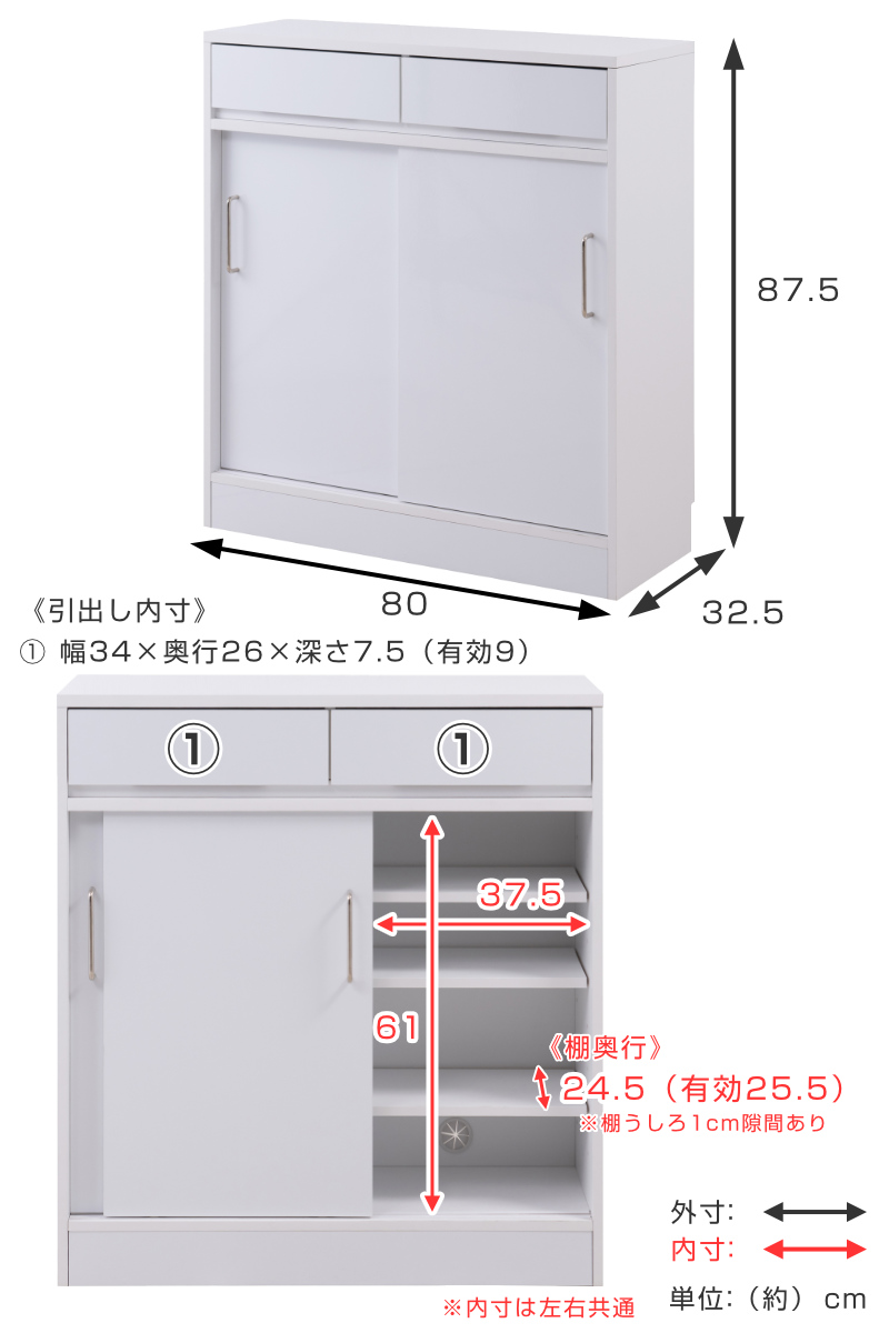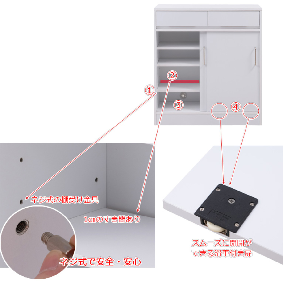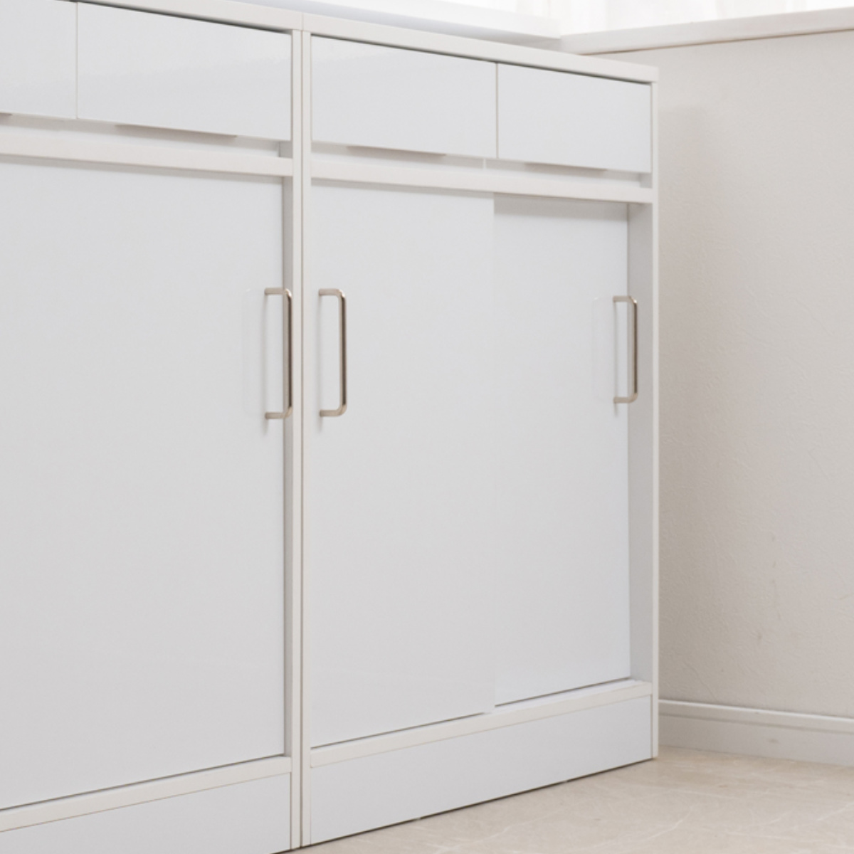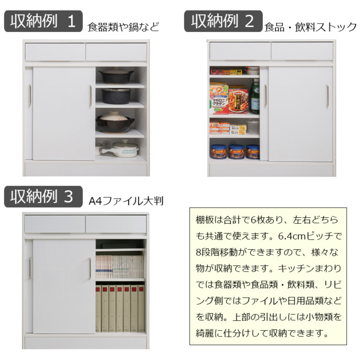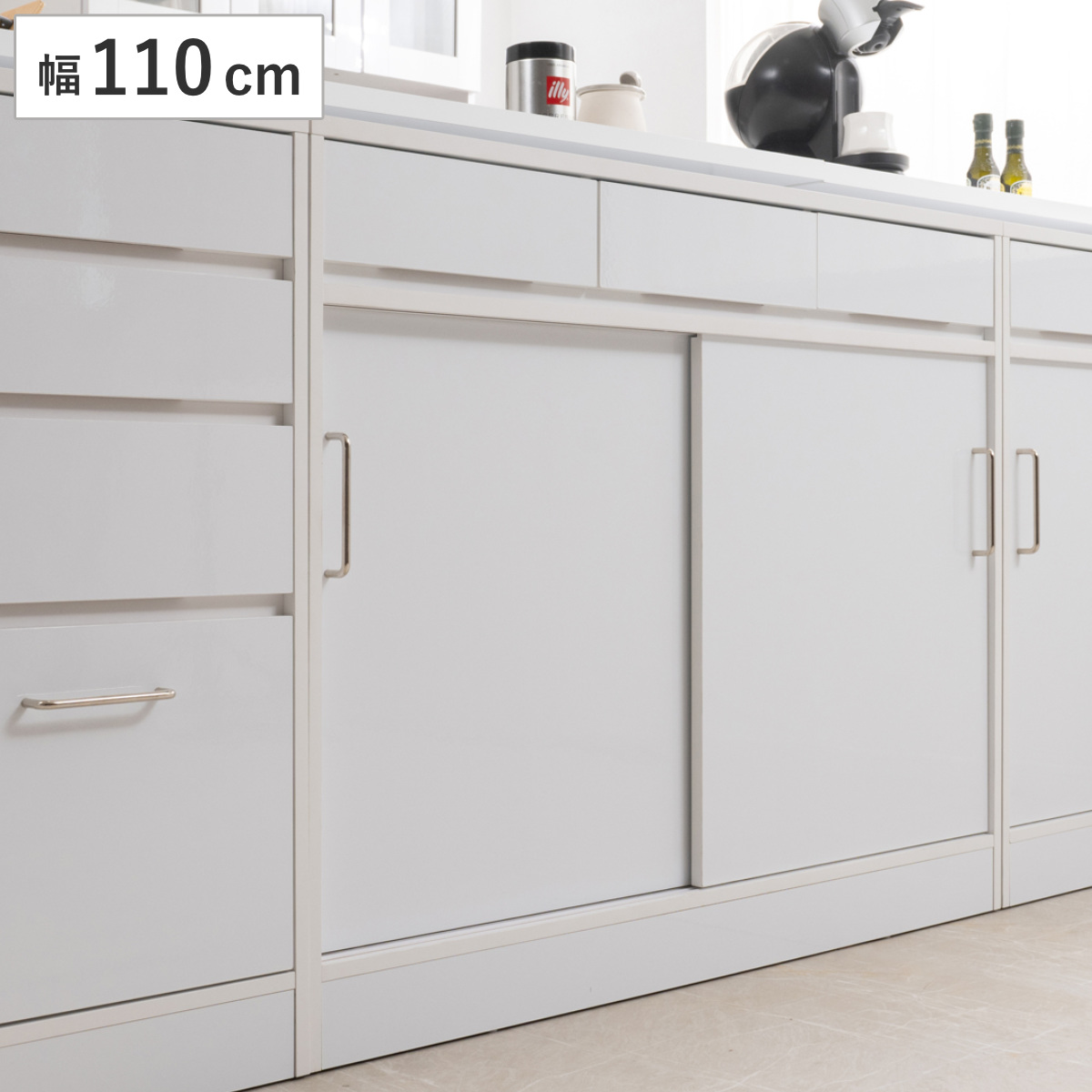 カウンター下収納 幅80cm キャビネット 引き戸 艶有り ( カウンター下 収納 SIRO A4対応 組み合わせ 薄型 奥行スリム 可動棚 キッチン収納 ホワイト 引き出し )
