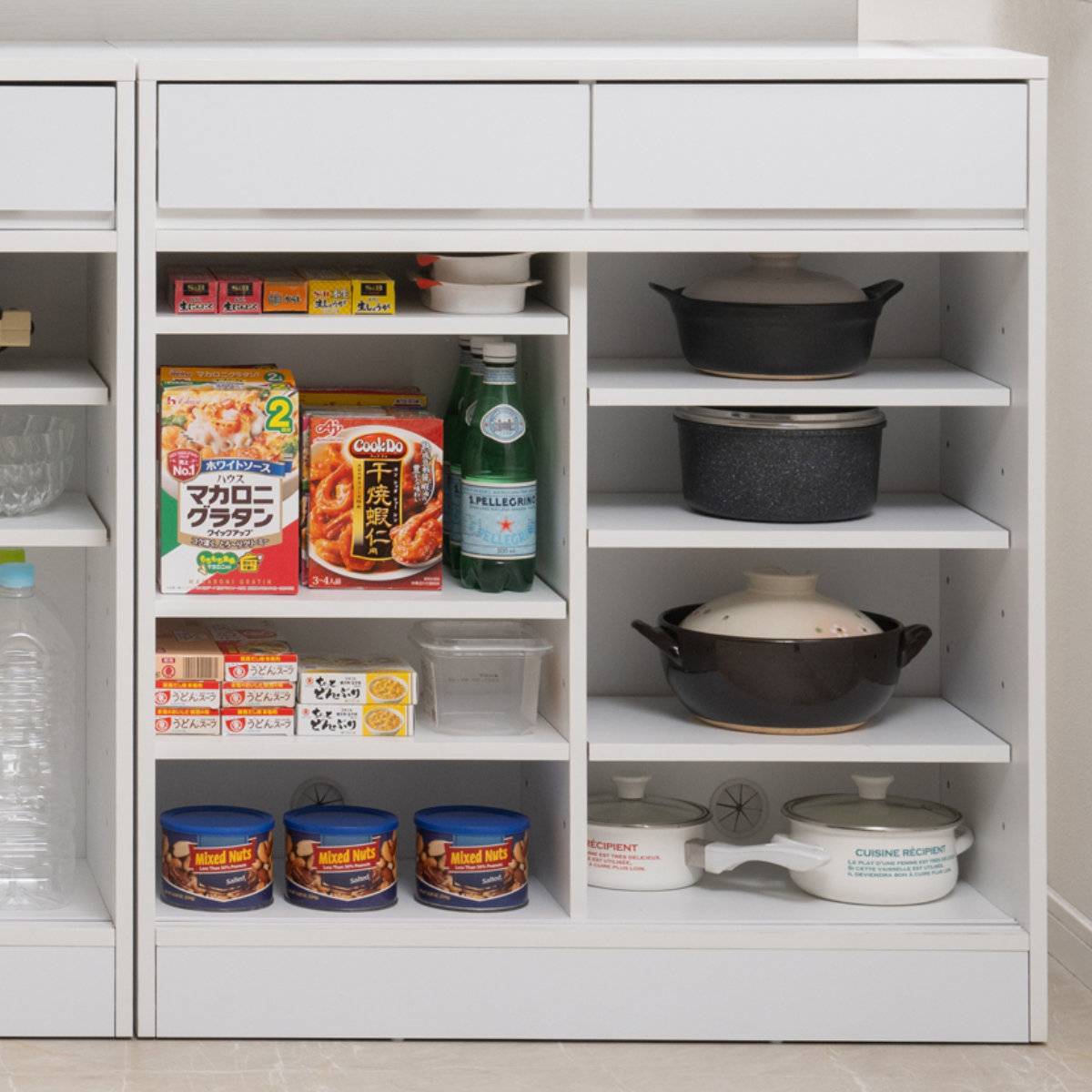 カウンター下収納としてだけではなく、リビングやダイニングなどのキャビネットとしてもお使いいただけます。薄型なので圧迫感なく設置できます。