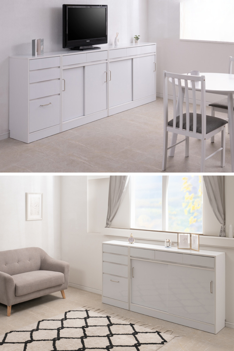 「SIRO(シロ)」シリーズは、高級感のあるハイグロス仕上げでお部屋に溶け込み、清潔感を与えます。また、汚れてもサッと拭き取りが出来て、お手入れも簡単です。