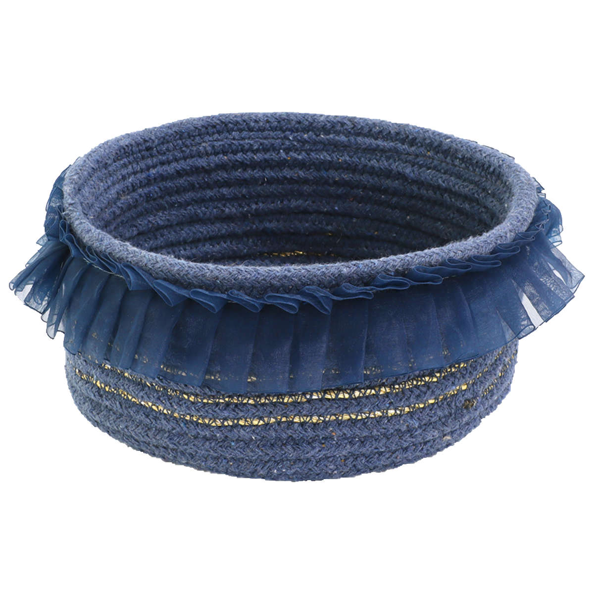 かご バスケット フリル 22cm ( 収納 バスケット収納 丸型 卓上収納 小物置き 小物収納 一時置き ディスプレイ おしゃれ カゴ 卓上 卓上バスケット リビング 玄関 洗面所 子供部屋 小物整理 インテリア雑貨 ) 【ネイビー】