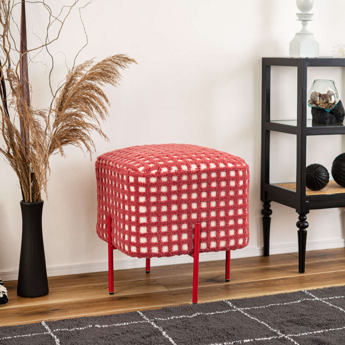スツール 高さ45cm ボア素材 スチール脚 ( 椅子 イス いす チェア チェアー オットマン 腰掛け 四角 玄関 ダイニング ふんわり 簡単組立 ファブリック 布 おしゃれ シンプル スチール 軽量 軽い かわいい サブチェア ベンチ 簡易 ) 【レッド】