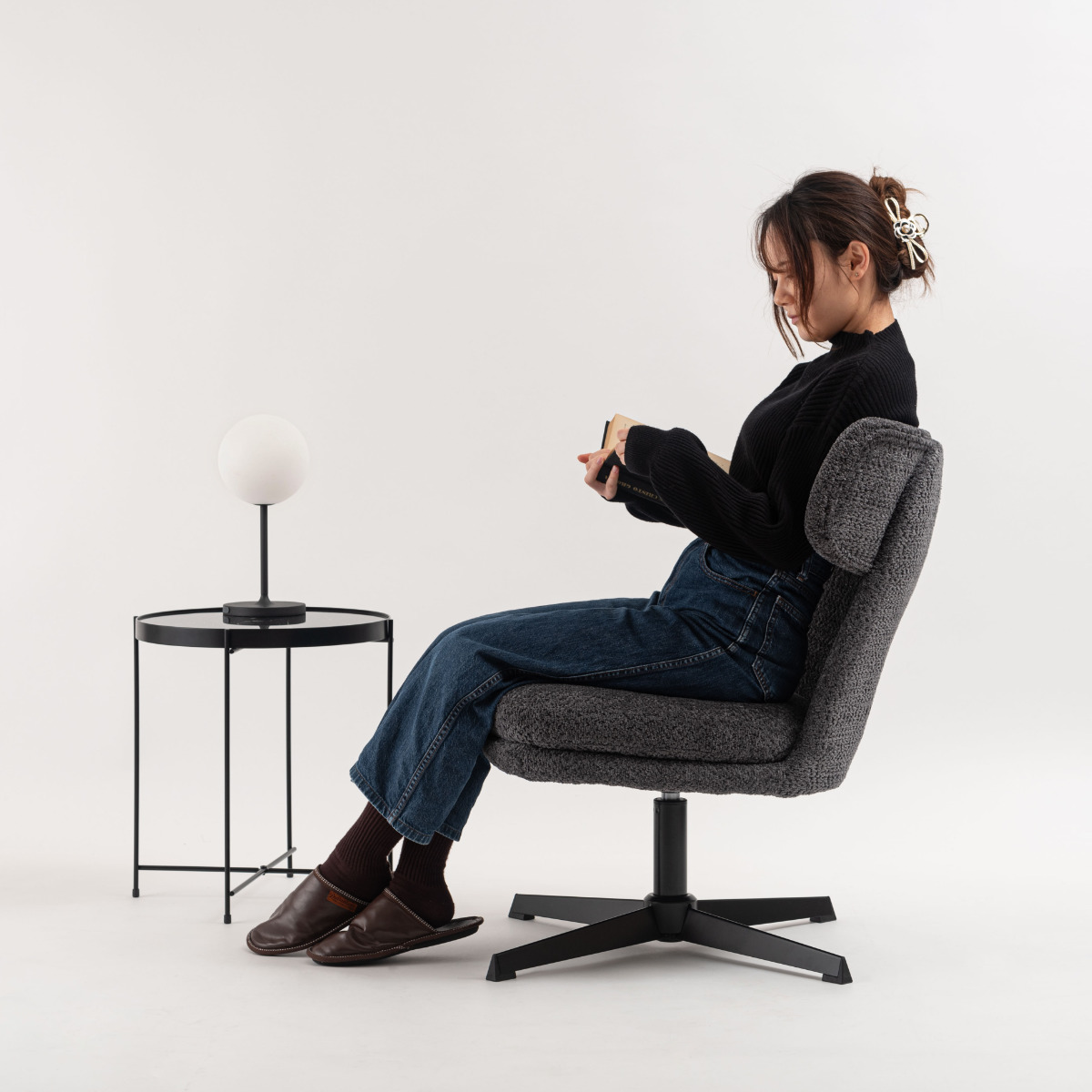 リビングチェア 座面高40cm ラウンジチェア ファブリック座面 ( 回転式 リラックスチェア 椅子 デスクチェア オフィス リビング シンプル モダン ホテルライク 1人掛け チェア ) 【ライトグレー】