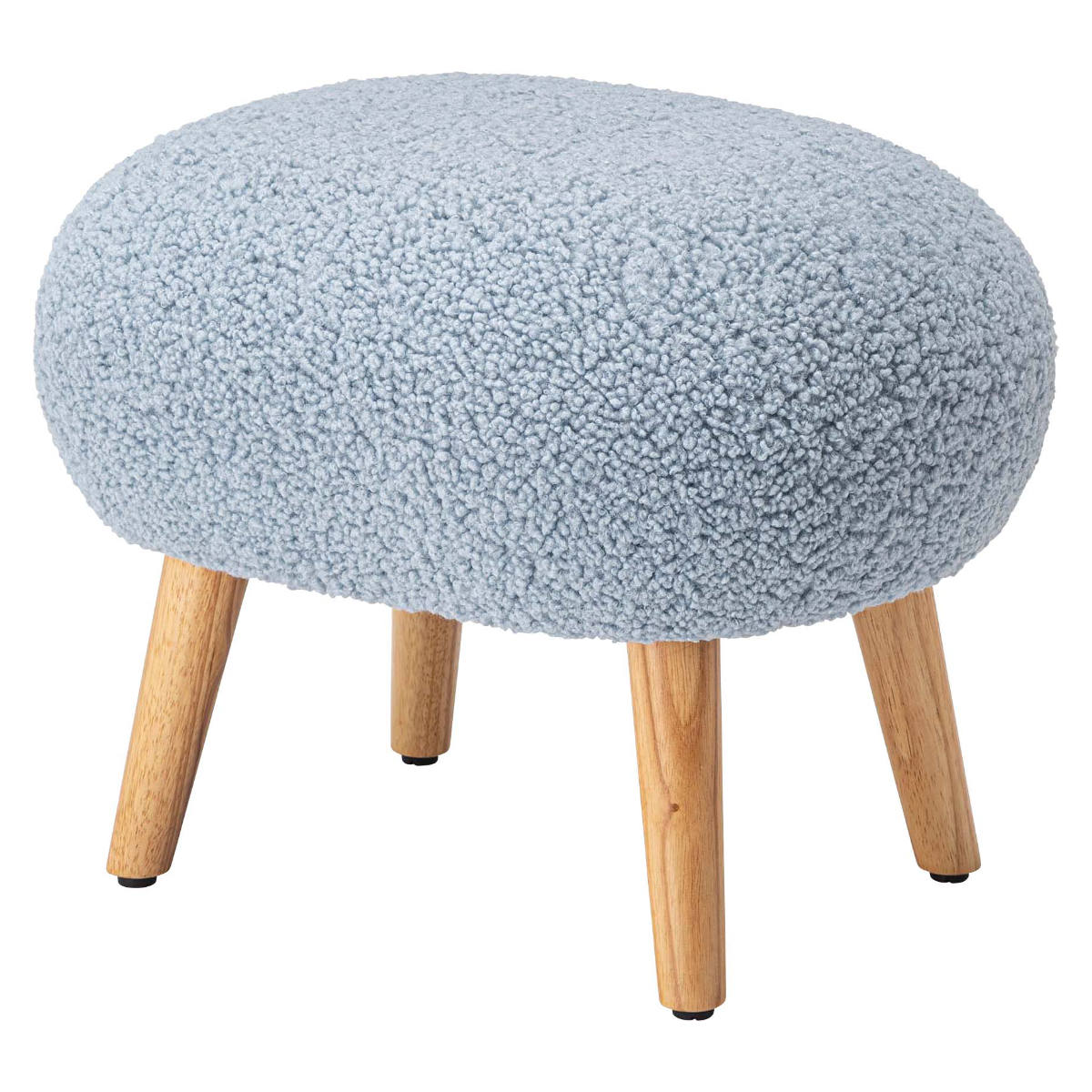 スツール 高さ38cm ブークレ生地 木脚 ( ロー 低い コンパクトサイズ 丸 ラウンド 円形 サブチェア 椅子 オットマン もこもこ 軽量 大人 子供 キッズチェア キッズ かわいい 玄関 リビング 寝室 子供部屋 キッズスペース ) 【ライトブルー】