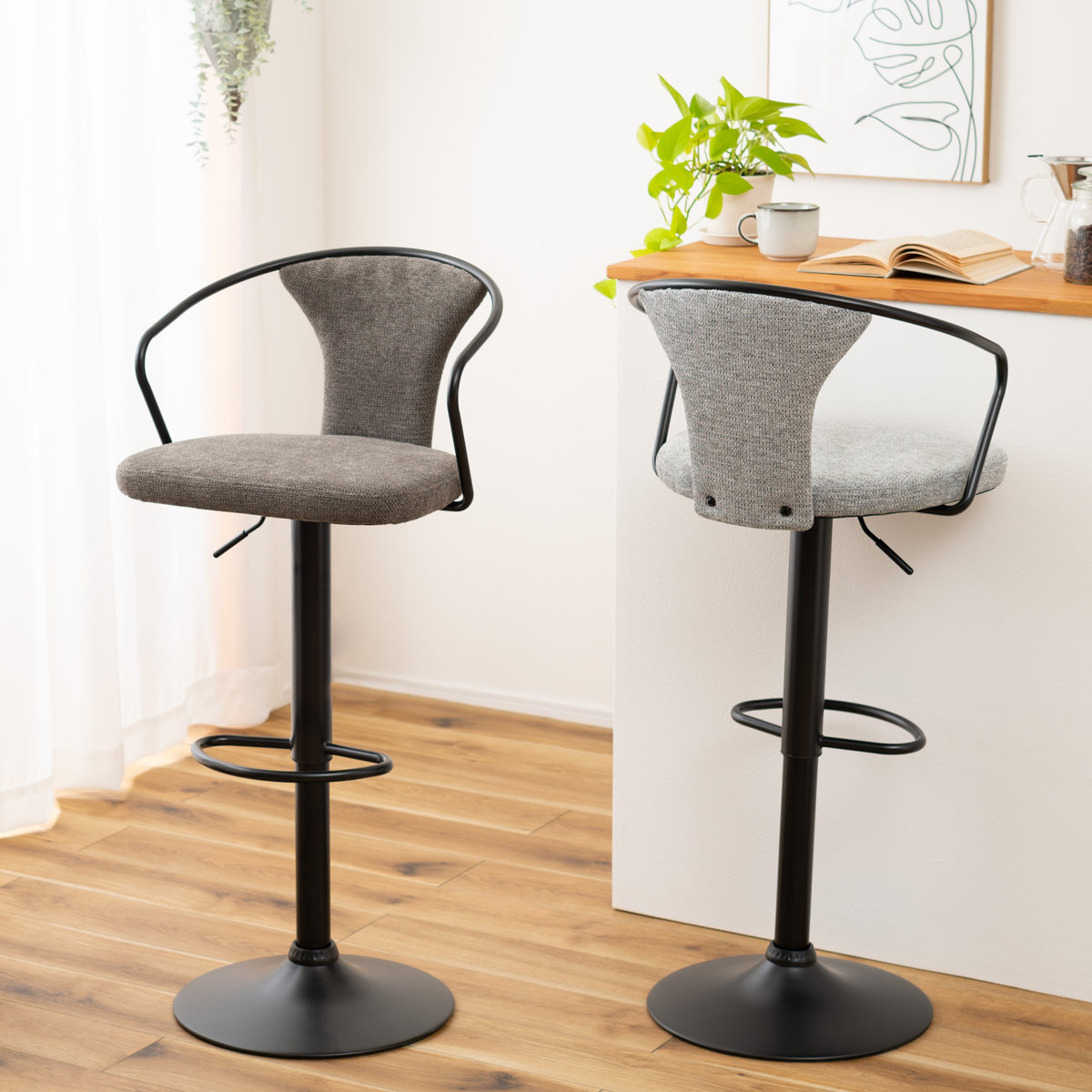 曲線が印象的な美しいフォルムとブラックスチールの控えめな輝きが上品なカウンターチェア。どんなお部屋にも調和するデザインと色味に仕上げました。