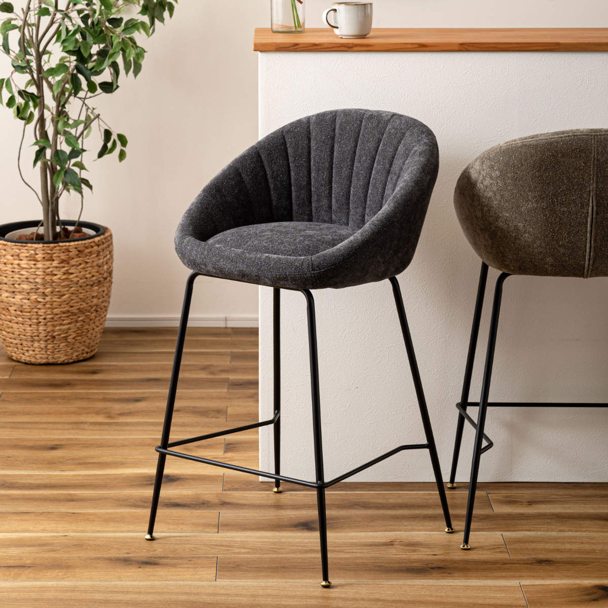 カウンターチェア 座面高66cm フットレスト付 ハイチェア ( 背もたれ付き バーチェア ハイタイプ キッチン チェア 椅子 ファブリック シンプル モダン スタイリッシュ ホテルライク ) 【ダークグレー】