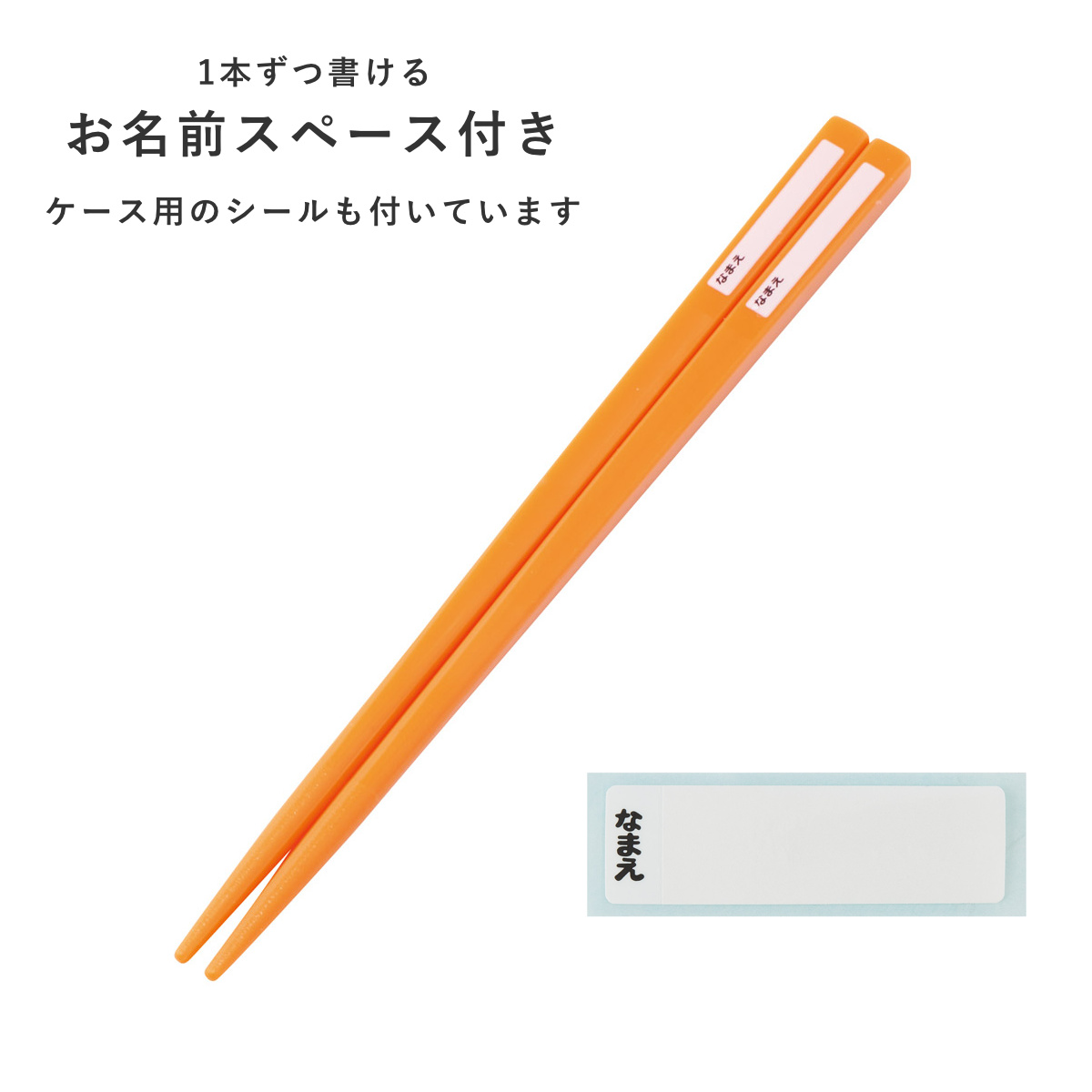 お箸には1本ずつ名前を書き込める名前スペースがあります。ケース用のシールも付いています。