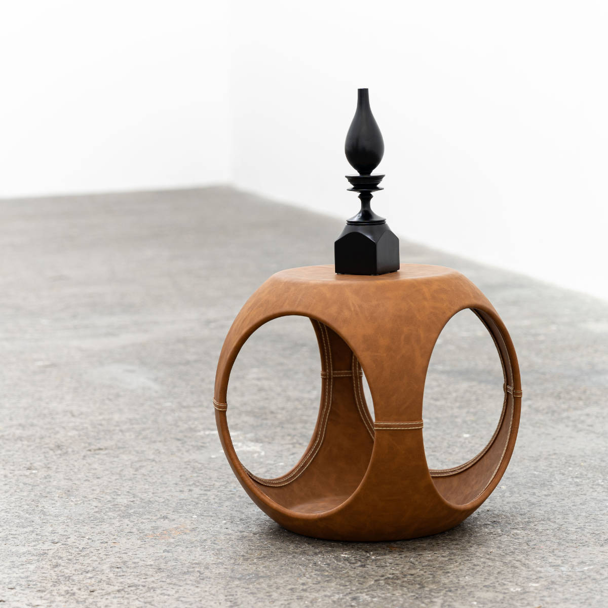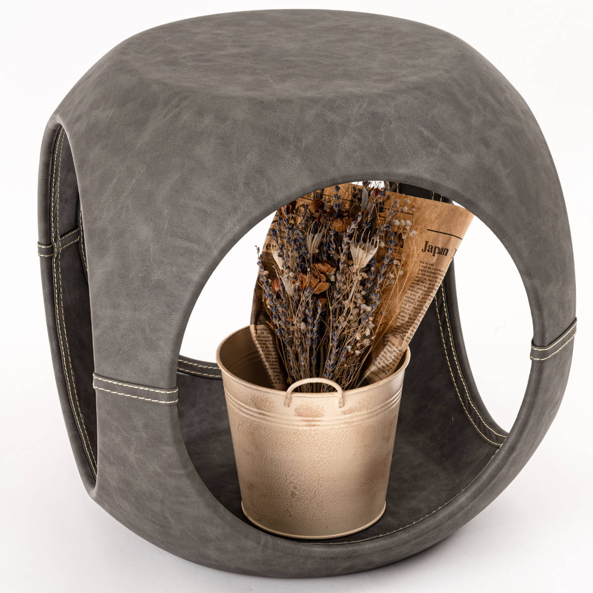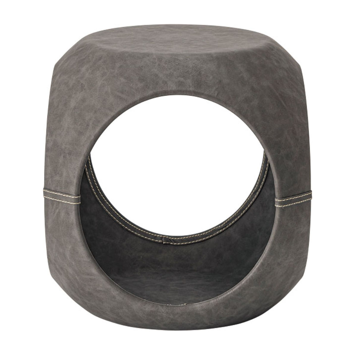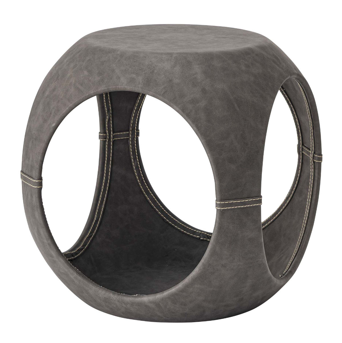 高級感のあるソフトレザーの質感と流線型のフォルムが絶妙な調和を魅せてくれるサイドテーブルです。サイドと内側のステッチもアクセント。独創的なフォルムが空間を彩ってくれるので、置くだけで主役になります。個性的ながら、平らな底と天板でしっかりとした安定感も兼ね備えています。