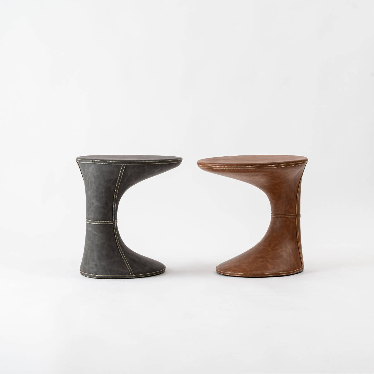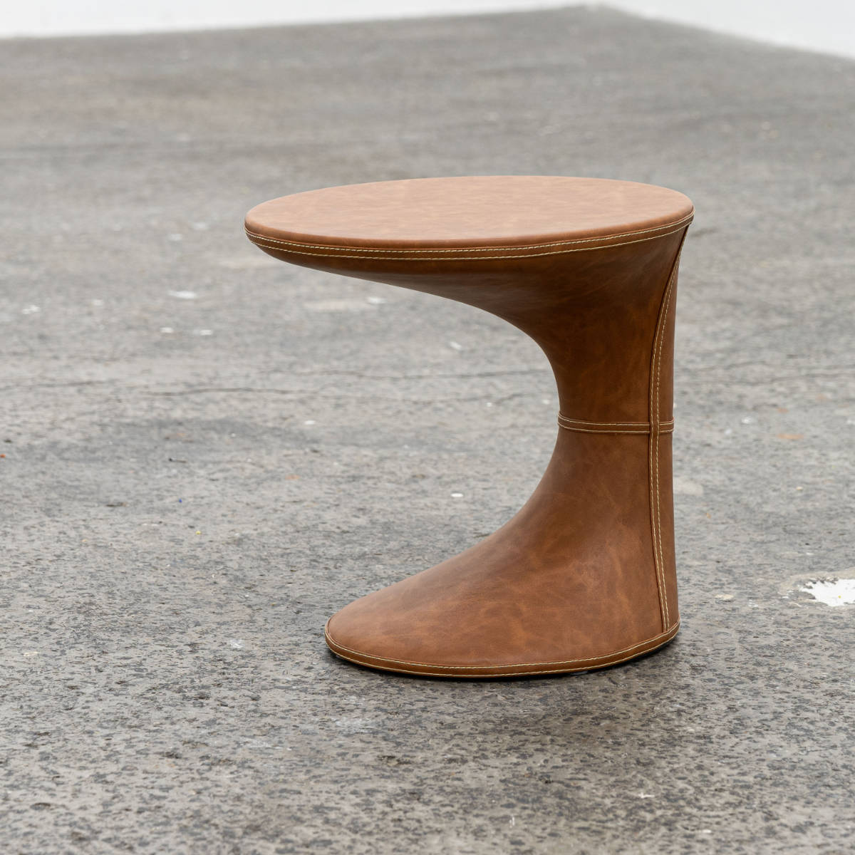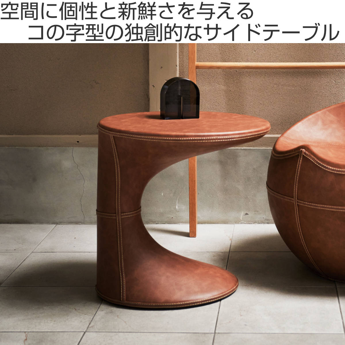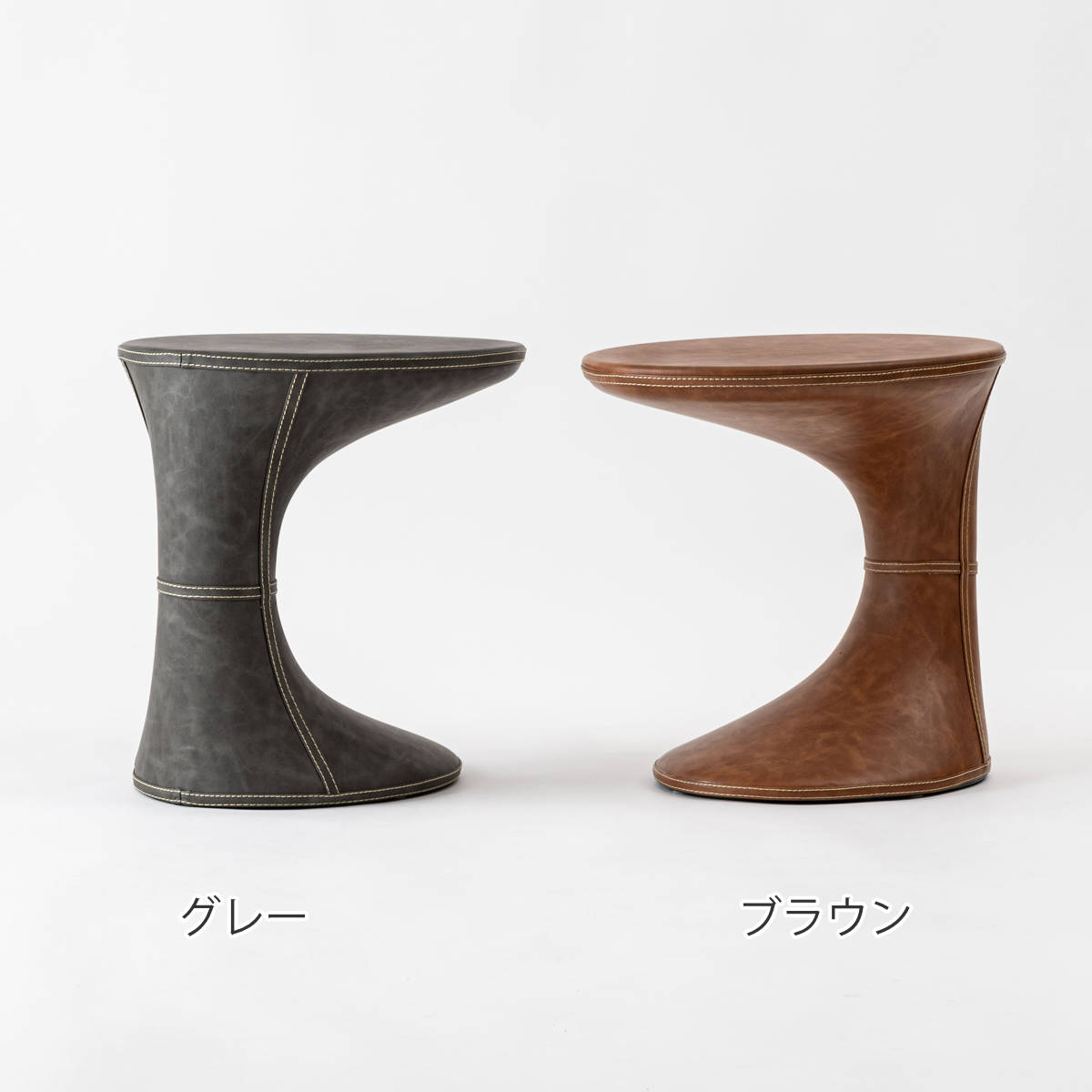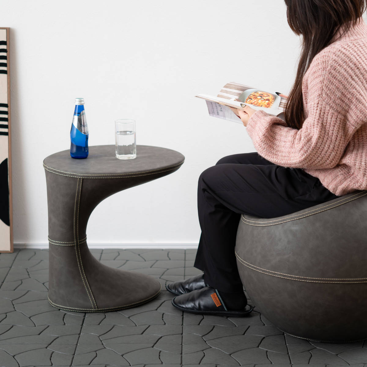 高級感のあるソフトレザーの質感と流線型のフォルムが絶妙な調和を魅せてくれるサイドテーブルです。サイドと内側のステッチもアクセント。独創的なフォルムが空間を彩ってくれるので、置くだけで主役になります。個性的ながら、平らな底と天板でしっかりとした安定感も兼ね備えています。