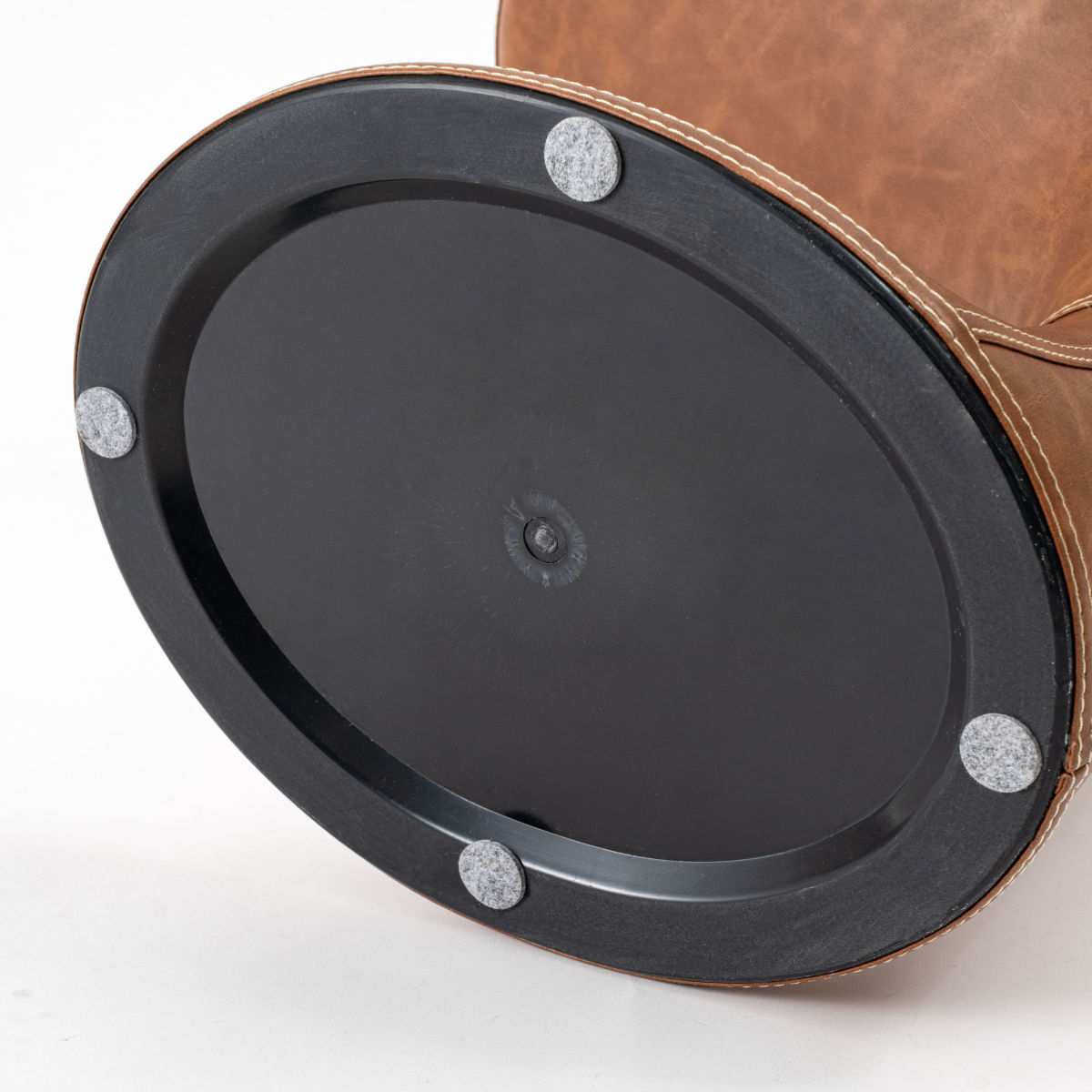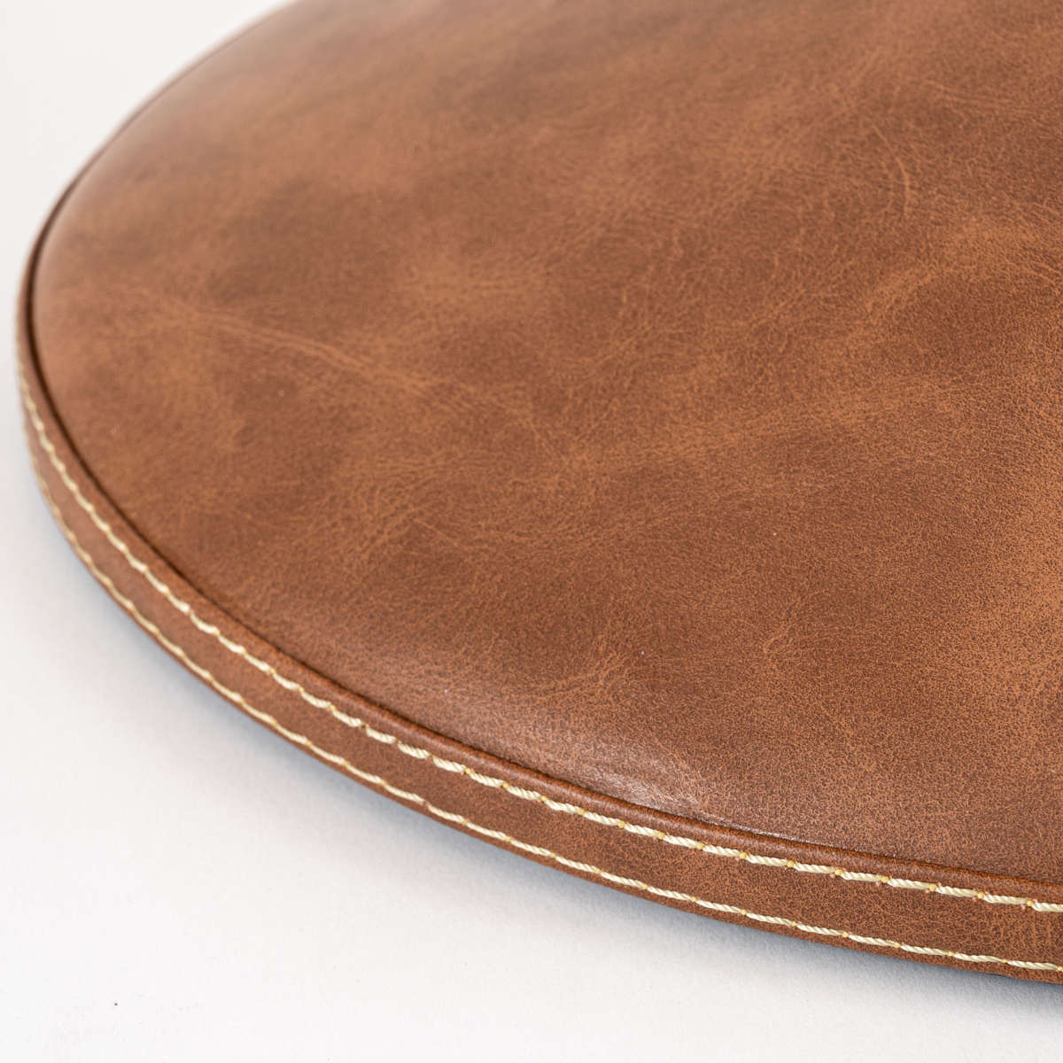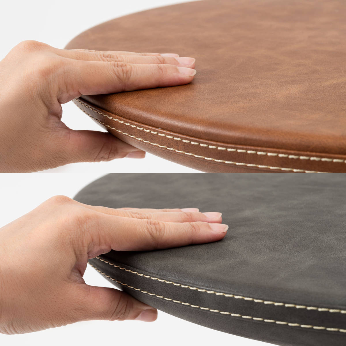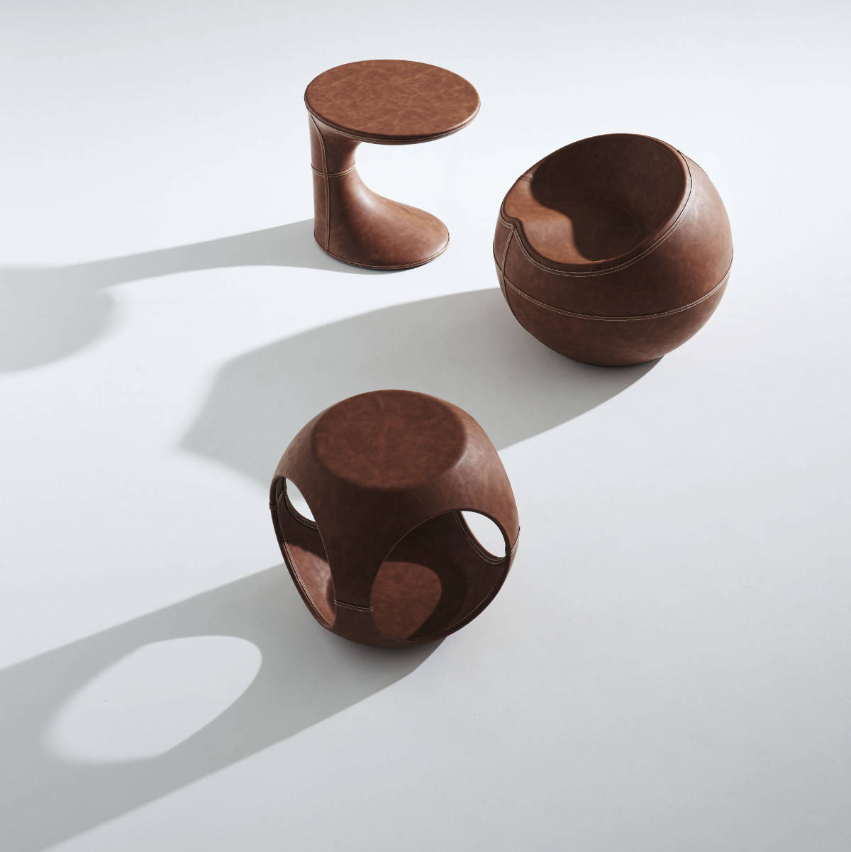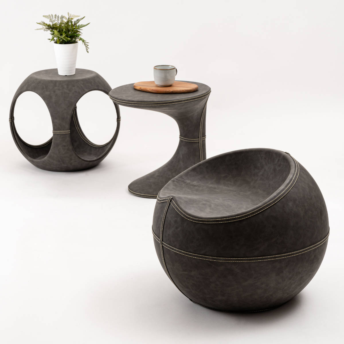 高級感のあるソフトレザーの質感と流線型のフォルムが絶妙な調和を魅せてくれるサイドテーブルです。サイドと内側のステッチもアクセント。独創的なフォルムが空間を彩ってくれるので、置くだけで主役になります。個性的ながら、平らな底と天板でしっかりとした安定感も兼ね備えています。