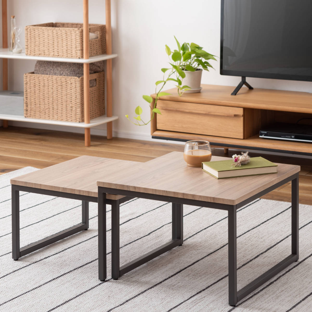 並べることで広々と使えます。ソファとも合わせやすい高さです。