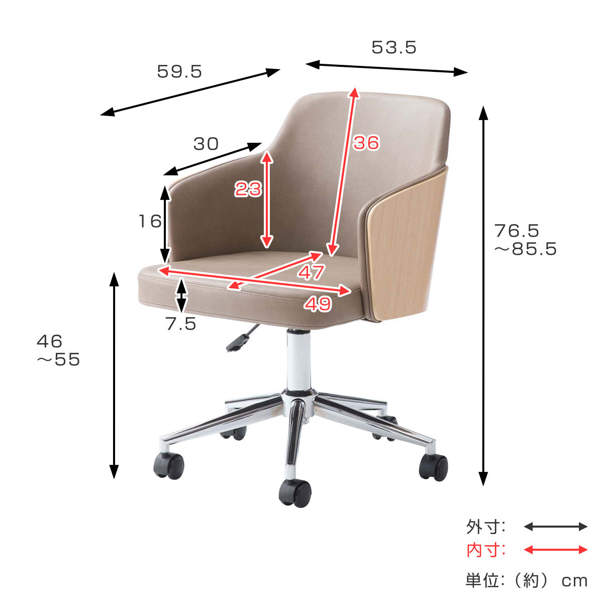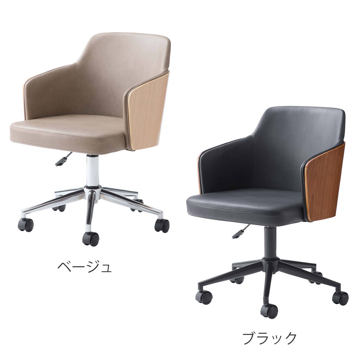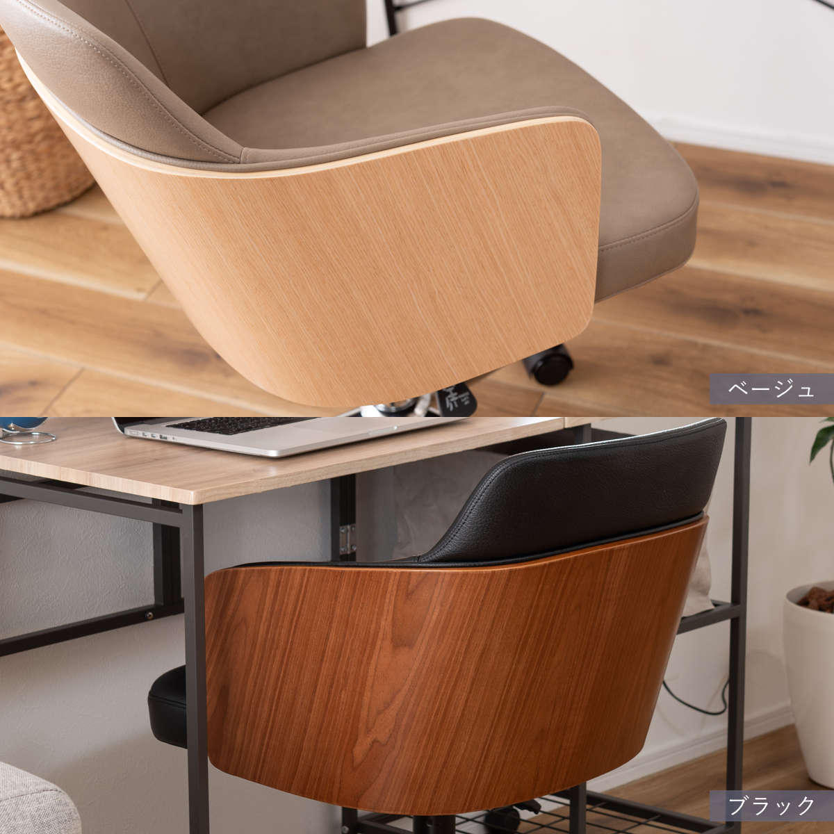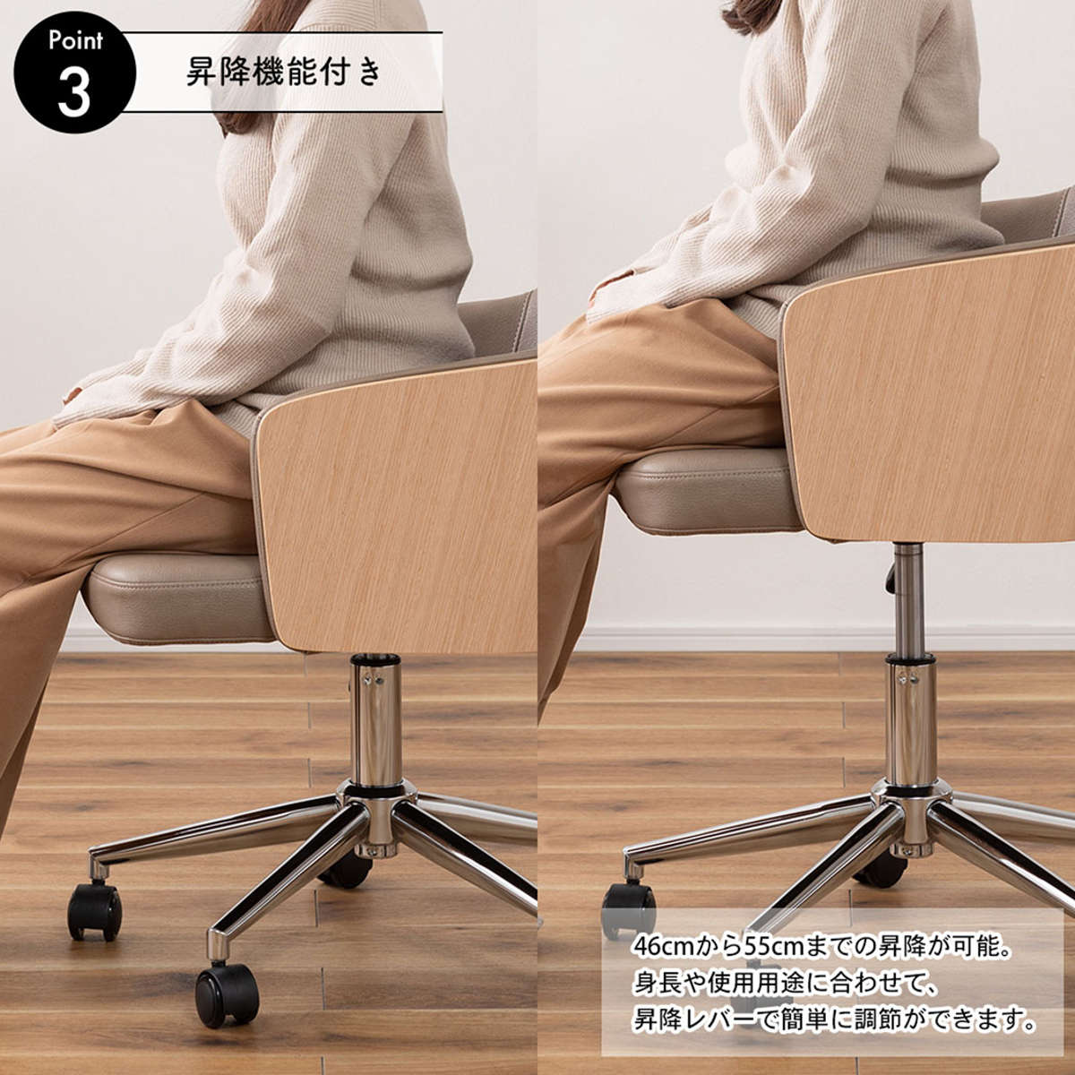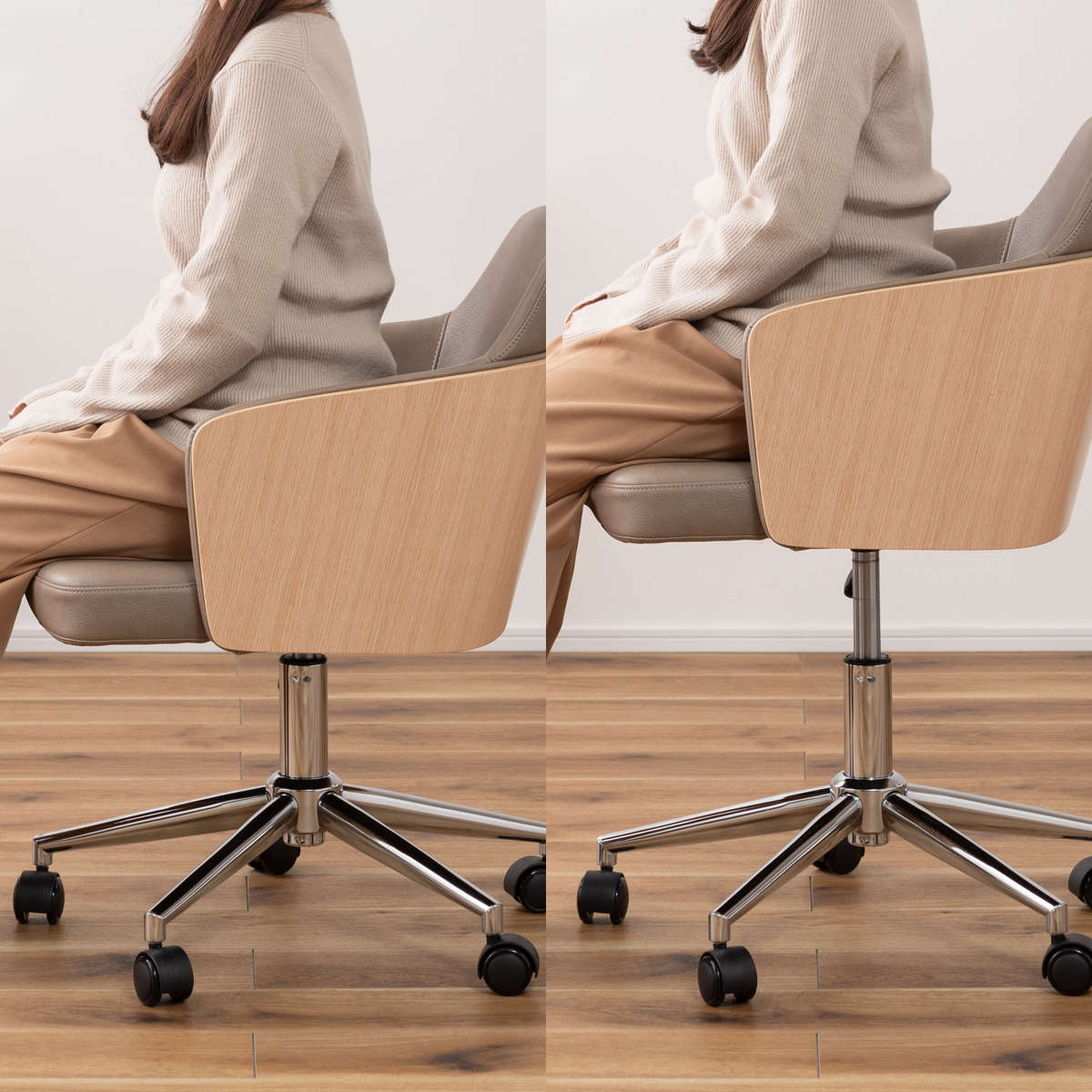 デスクチェア 昇降式 座面高46~55cm ソフトレザー×木目調 ( 回転 肘付き レザー調 パソコンチェア オフィスチェア 椅子 チェア おしゃれ 高さ調節 キャスター付き ) 【ベージュ】
