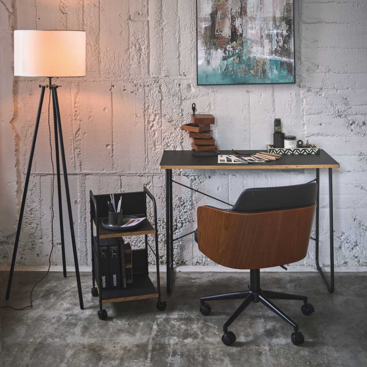 ブラックのレザーとブラウンの木目が高級感を演出し、インダストリアルやモダンテイストなどのスタイリッシュな空間に最適です。