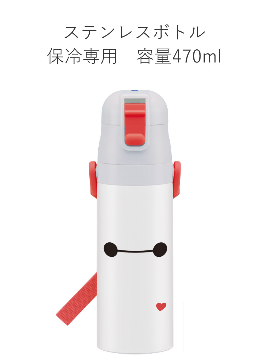 水筒 470ml 超軽量ダイレクトボトル ベイマックス(25) ( ディズニー 保冷 軽量 直飲み ワンタッチ ステンレスボトル 子供用水筒 子供 直のみ 軽い 超軽量 ワンプッシュ ダイレクトボトル ダイレクト ボトル ステンレス )