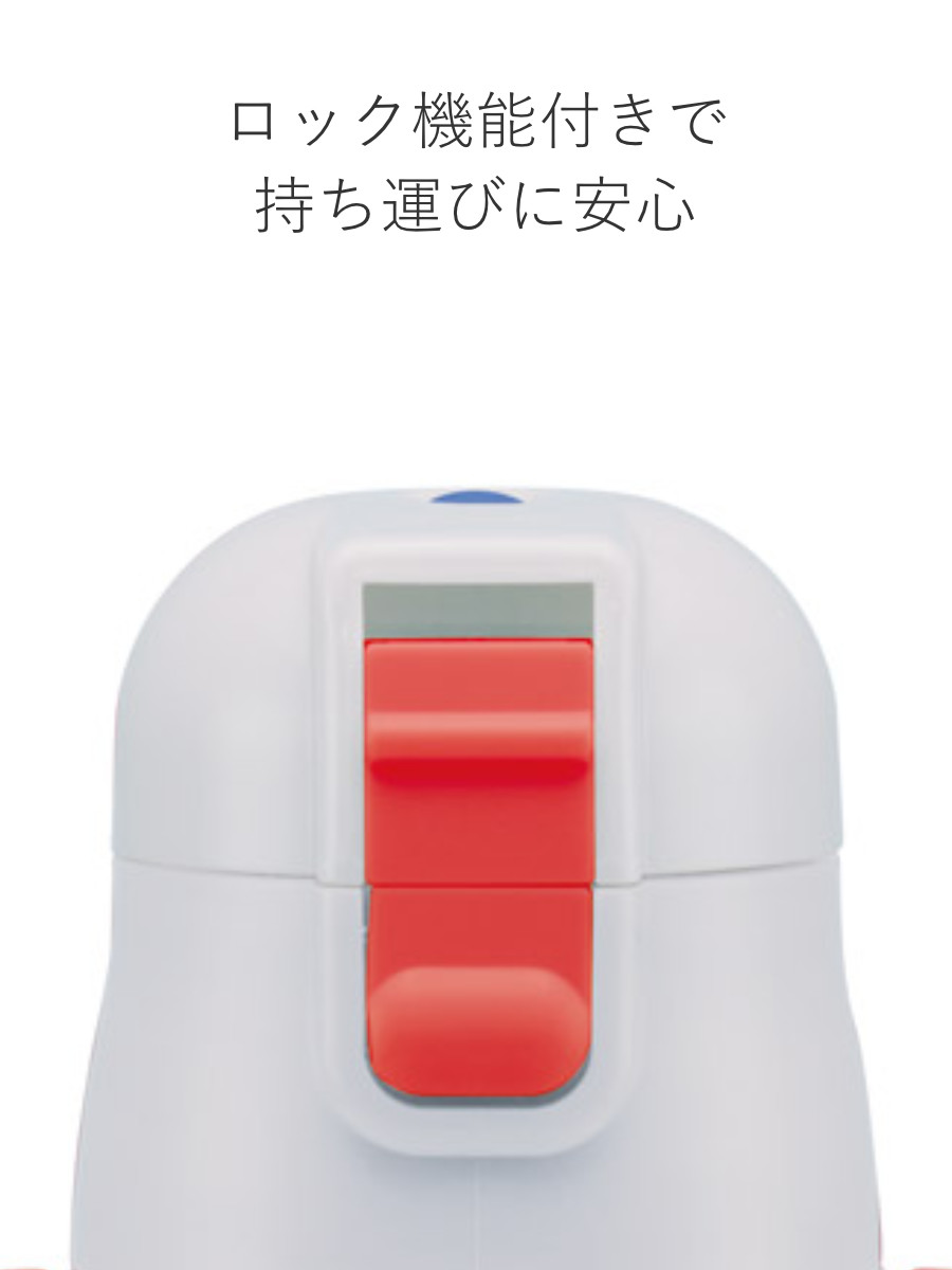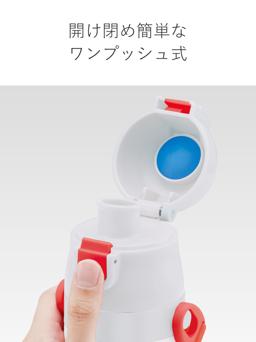 水筒の蓋はボタンを押すだけで開けることができるワンタッチ式です。飲み終わったら蓋をカチッと閉めるだけなので、小さなお子様でも簡単に開閉できます。