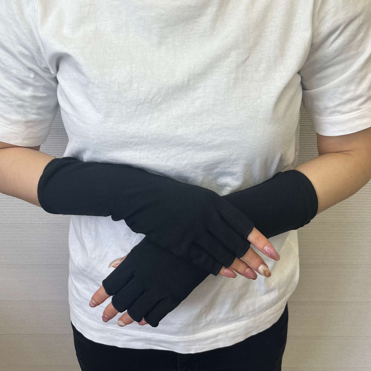 長めの指切りタイプでしっかりUVケアをしながら利便性にも優れています。指先が自由に使えるので、スマホの操作や財布の出し入れなども楽に行えます。
