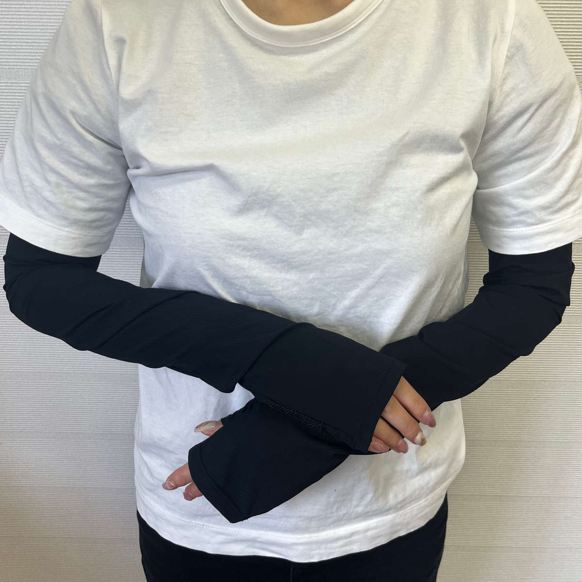 外出時はもちろんスポーツ、自転車や自動車の運転時など様々なシーンでの日焼け対策にお使いいただけるアームカバーです。さらっとひんやり接触冷感素材で快適な付け心地です。