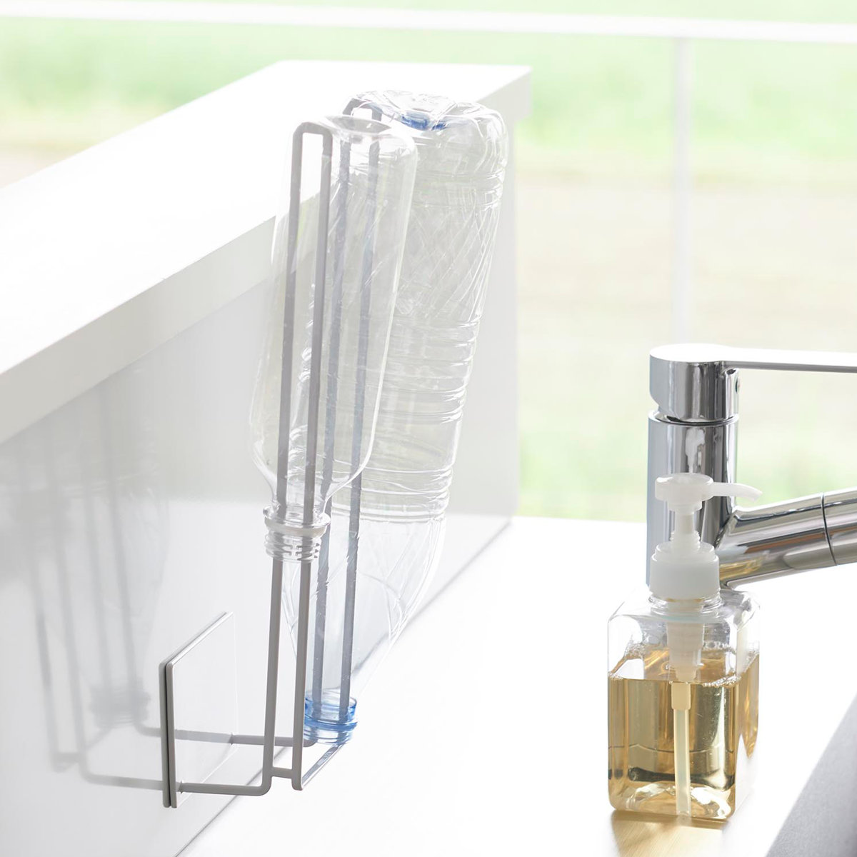 キッチンパネルに設置すれば食品保存袋の乾燥にも使用できます。ホルダー部が長く、リサイクルに出す前のペットボトルを乾かす際にも便利です。