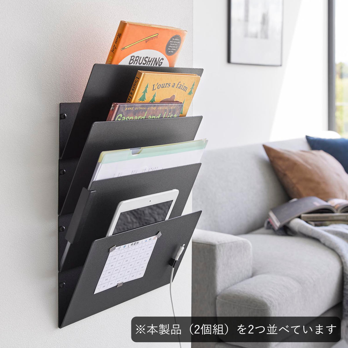 用途に合わせて縦と横でお好みの位置に連結させて、壁面空間を利用して収納を増やせるプリント収納ラックです。連結させての使用はもちろん、それぞれ単体でも使える便利な2個組です。