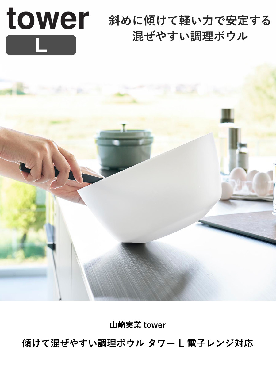 山崎実業 tower 傾けて混ぜやすい調理ボウル タワー L 電子レンジ対応 ( 4903208013895 タワーシリーズ 調理ボウル 調理 ボウル 電子レンジ レンジ対応 食洗機対応 混ぜやすい ボール 耐熱ボウル キッチンボウル 調理用ボウル ) 【ホワイト】