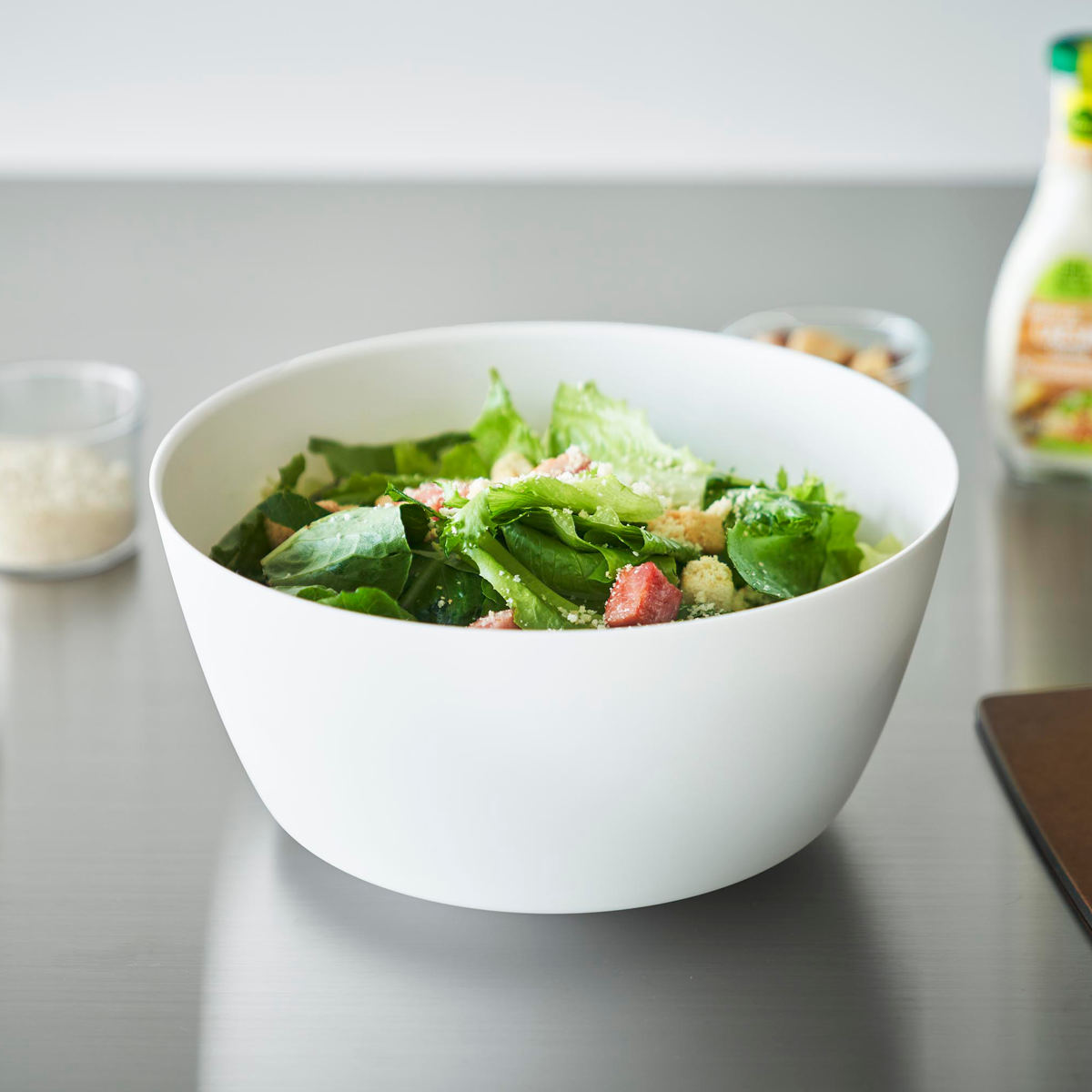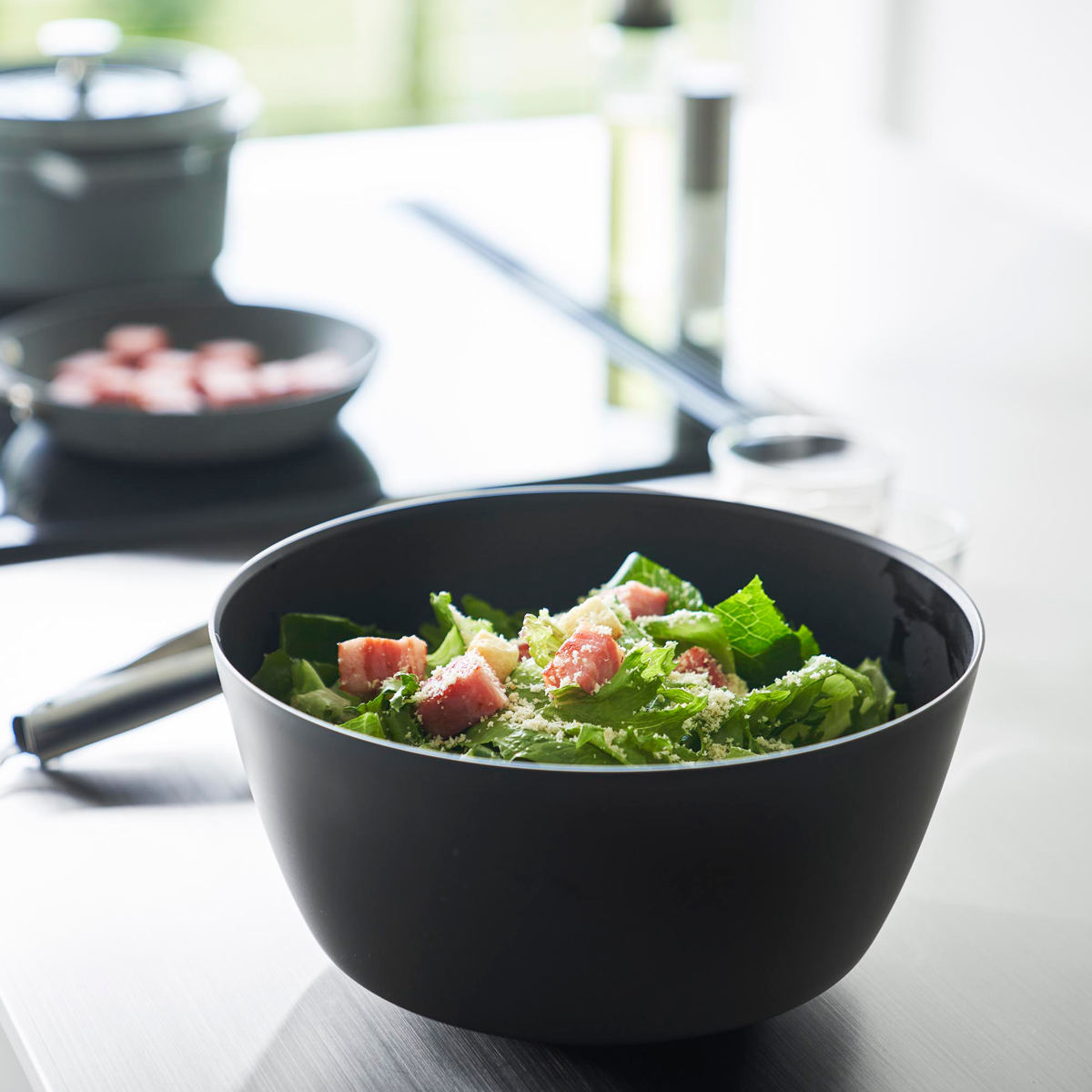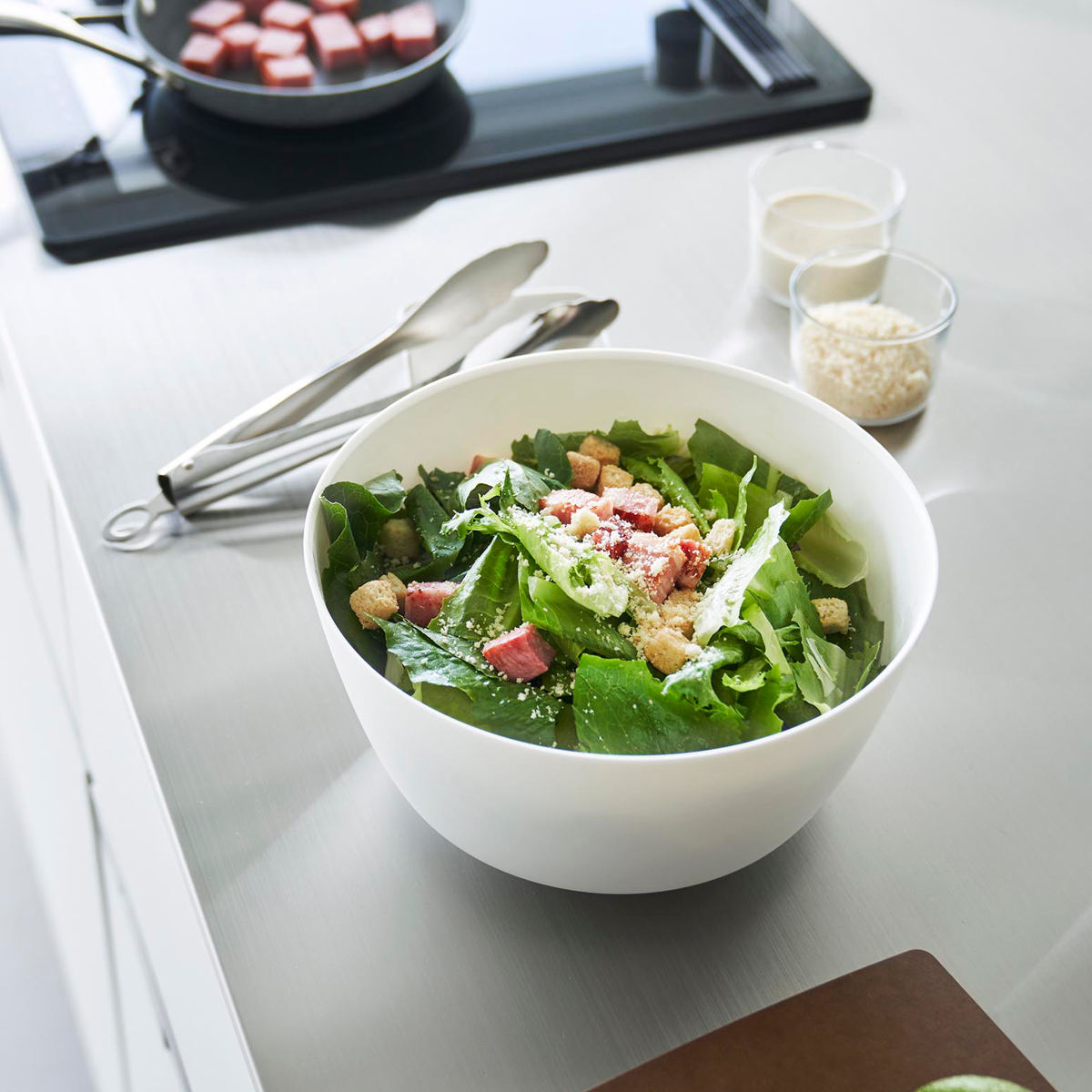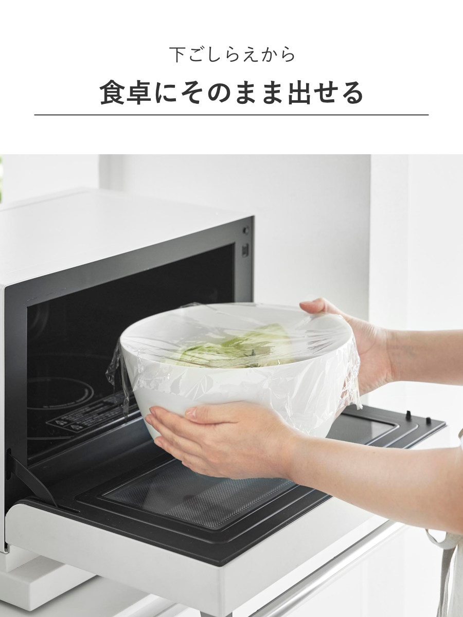電子レンジで加熱できるので蒸し野菜や下ごしらえに便利です。そのまま食卓に出せるスッキリとしたデザインで洗い物を減らすことができます。調理をしてから食器として使えるボウルは幅広く活用できます。