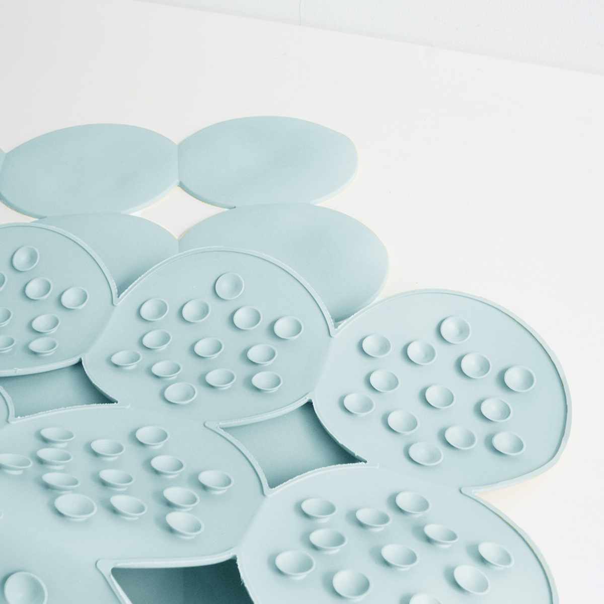 マット裏面は滑り止め付きです。234個の吸盤がしっかりと浴槽に密着し、浴槽への出入りがしやすいです。簡単に設置できてズレにくく、お子様からご高齢の方まで安心してお使いいただけます。