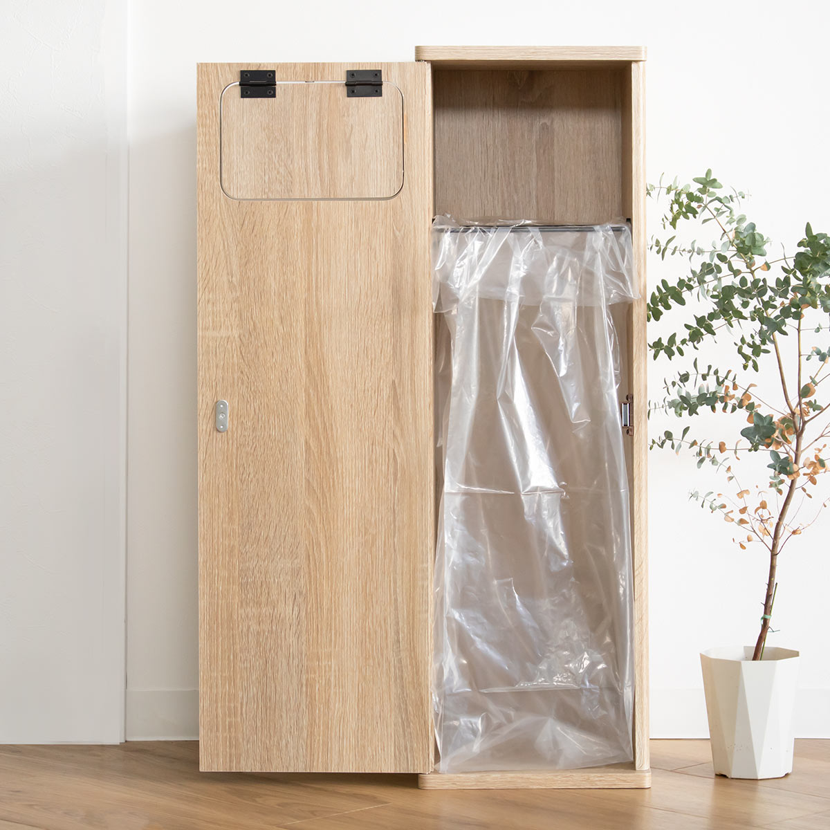 ゴミ袋を固定するリング付きで、袋の取り付けも簡単です。しっかり固定されるので、ゴミをたくさん入れても安心です。また、前扉の開閉は開けやすくしっかり閉まるマグネット式で、袋の出し入れがラクラクです。