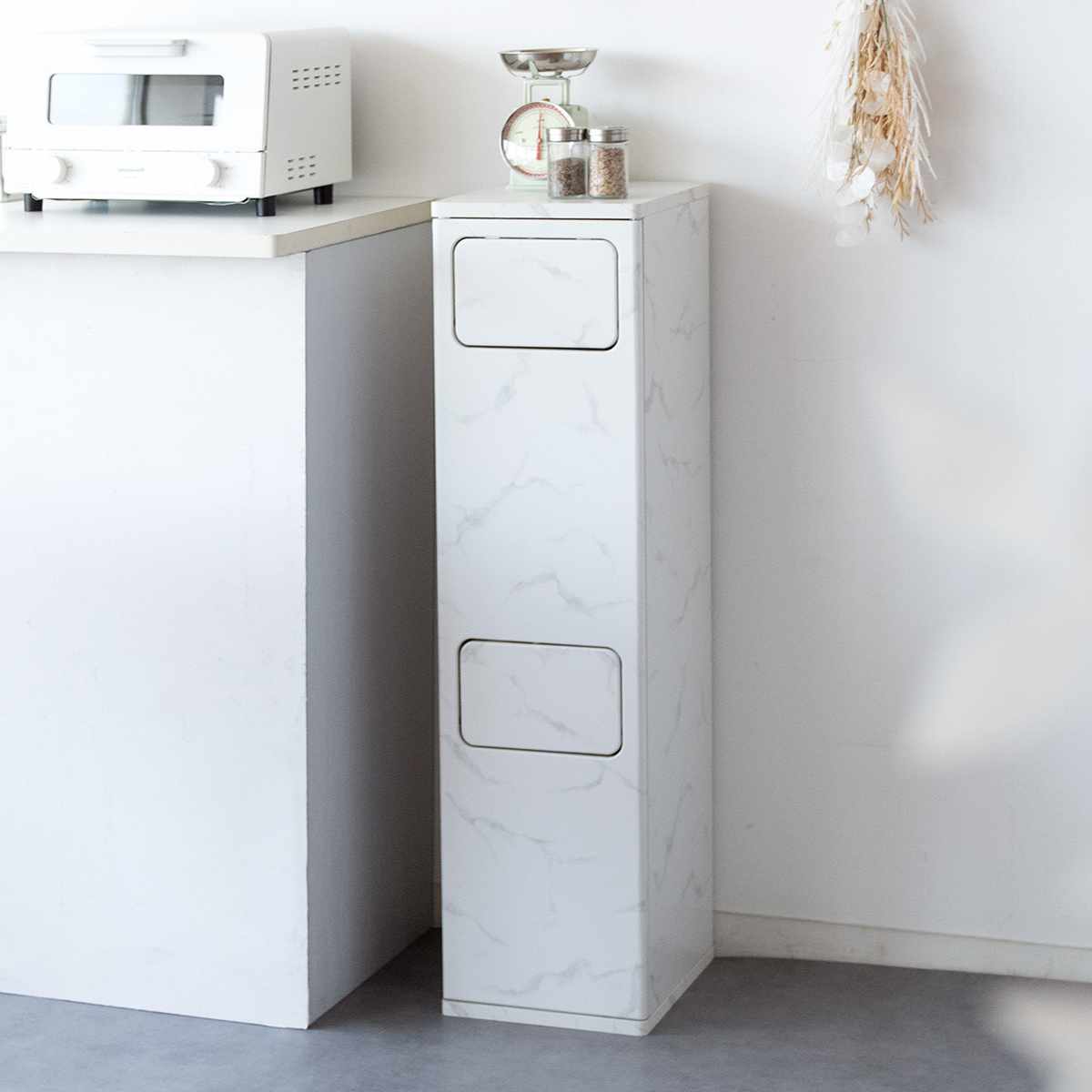 上下で別のゴミが捨てられる2分別仕様になっており、それぞれ容量は20Lサイズです。分別ゴミが出やすいキッチンはもちろん、リビングや寝室など様々な場所で、ゴミを分けながら捨てられます。後で分別する手間が省けて便利です。