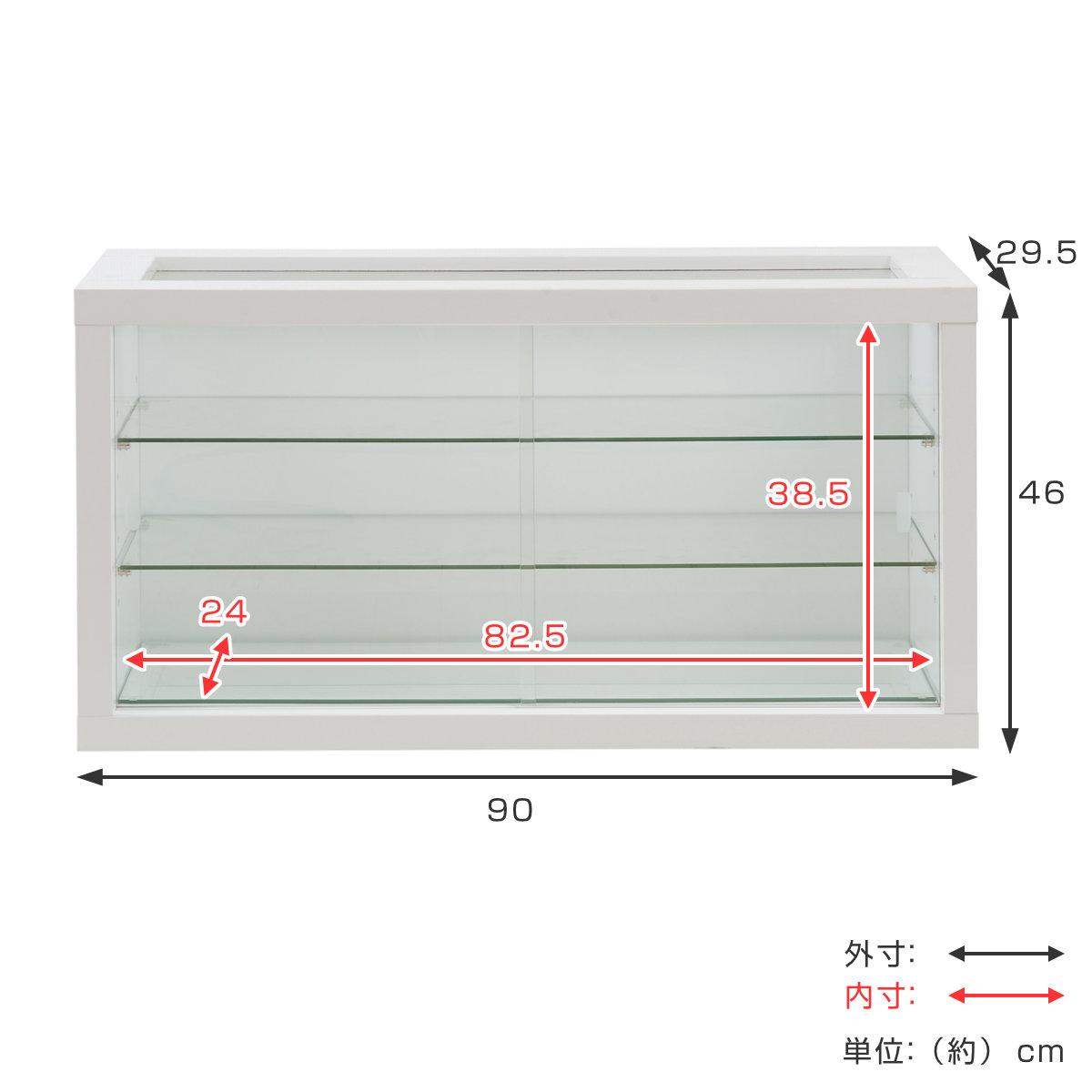 コレクションボード ガラス棚タイプ 幅90cm 艶有り仕上げ ( recta コレクションラック ディスプレイ 収納 棚 引出し 艶あり 組み合わせ ガラス天板 ハイグロス仕上げ 引き戸 ホワイト 可動棚 奥行スリム 薄型 )