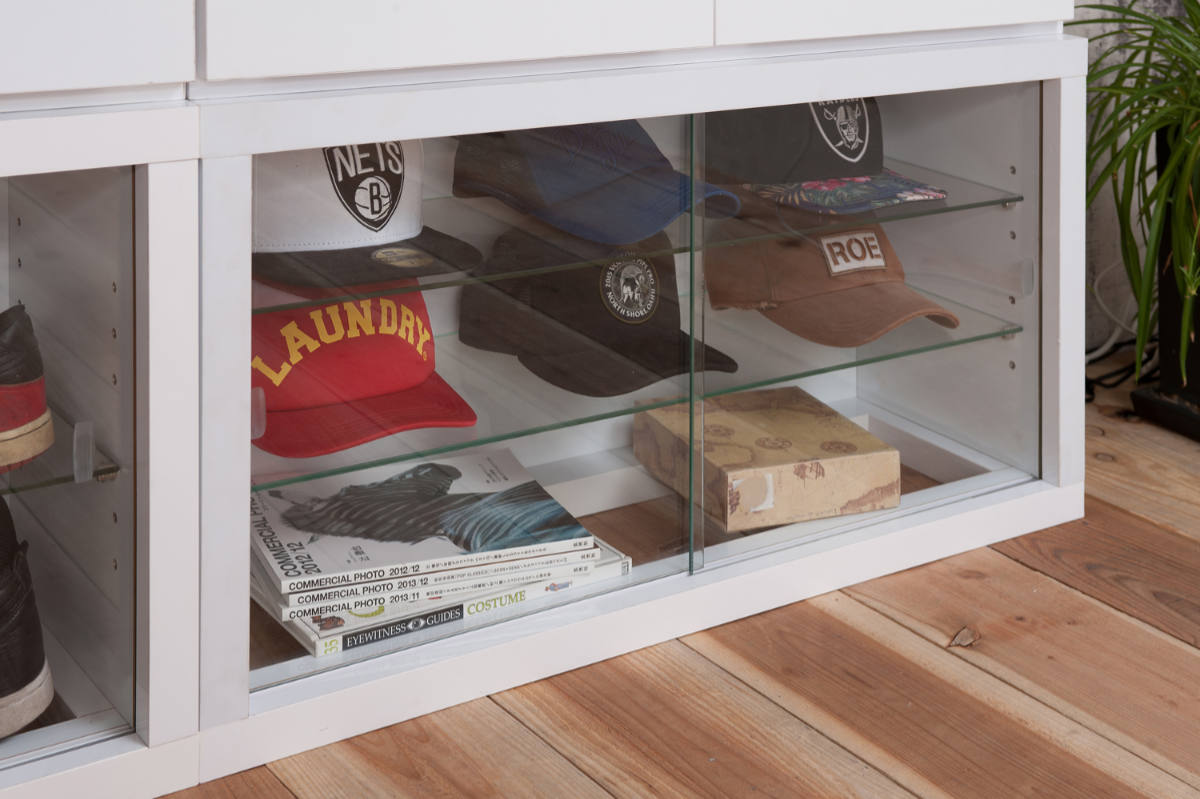 天板は明かりを取り入れられる強化ガラス仕様です。お気に入りのコレクションを前面だけでなく、上部からも眺めて鑑賞できます。