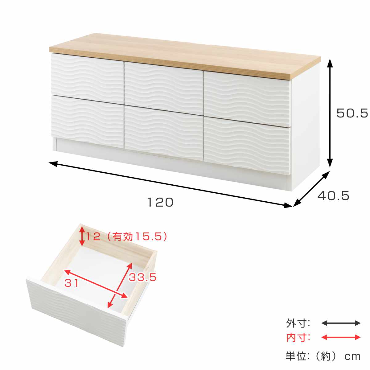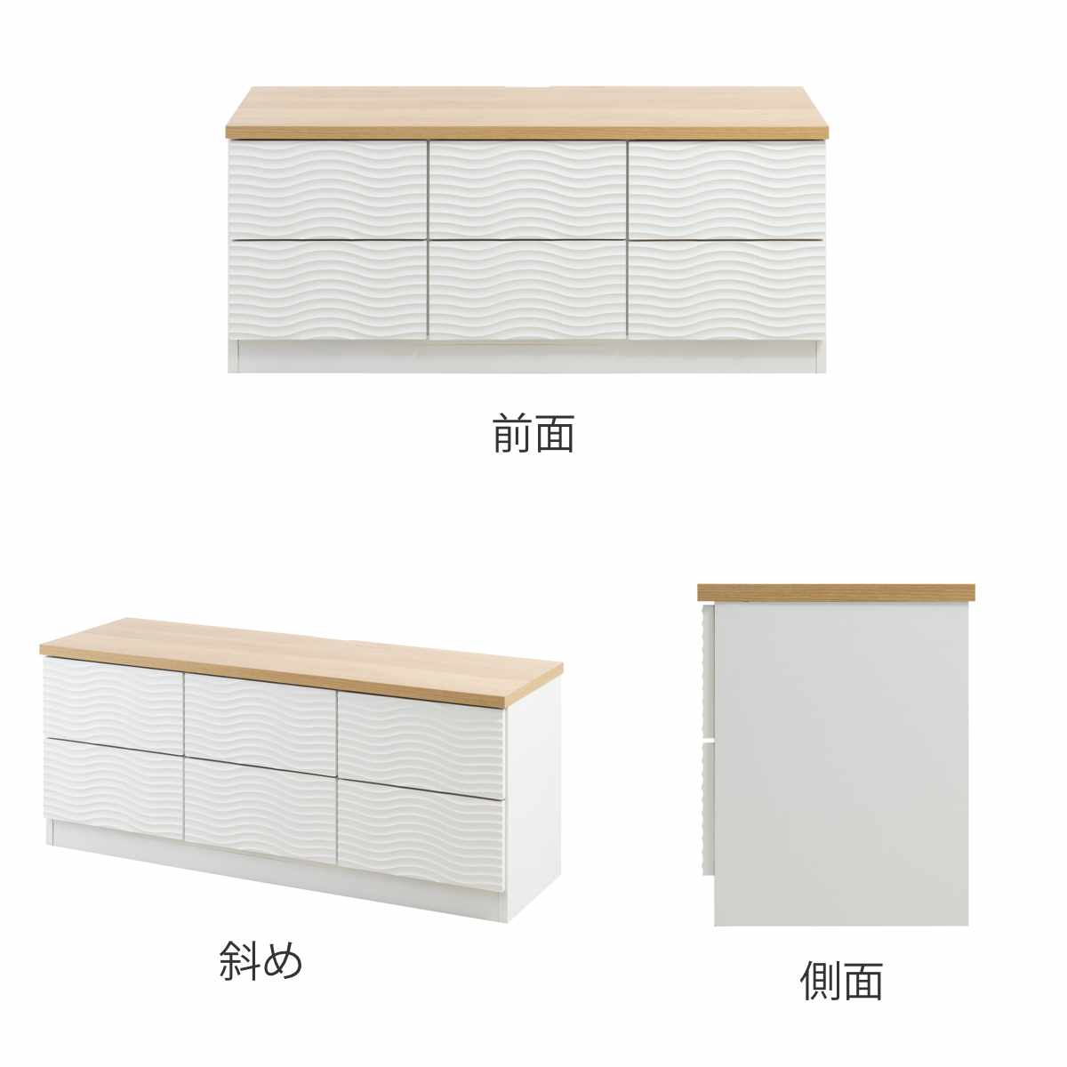 チェスト 幅120cm ウェーブ模様 引出し6杯 日本製 完成品 ( wave ローボード テレビ台 収納 TV台 テレビボード 引出し ホワイト シンプル 6杯 )