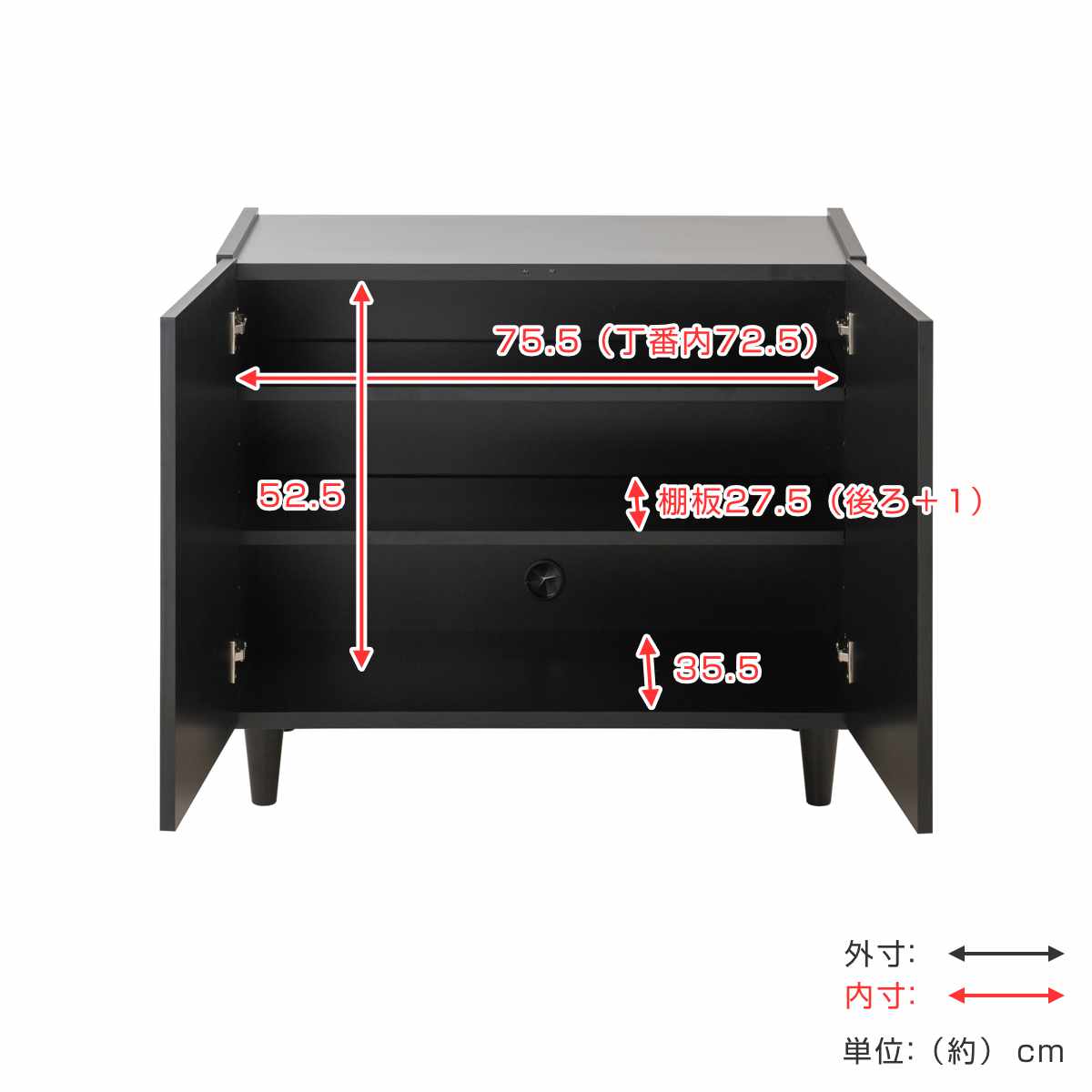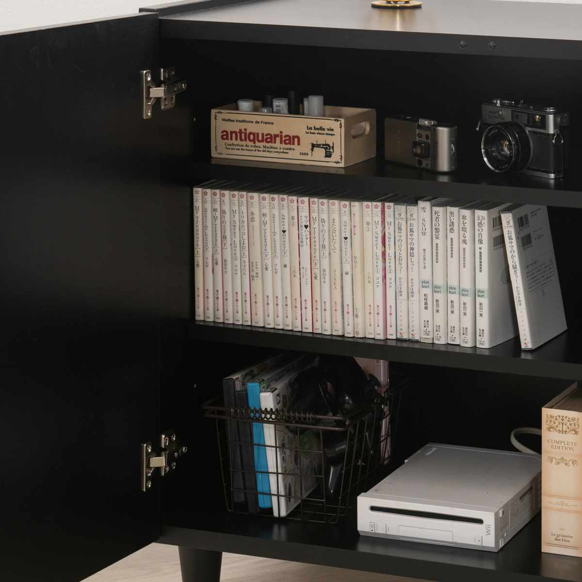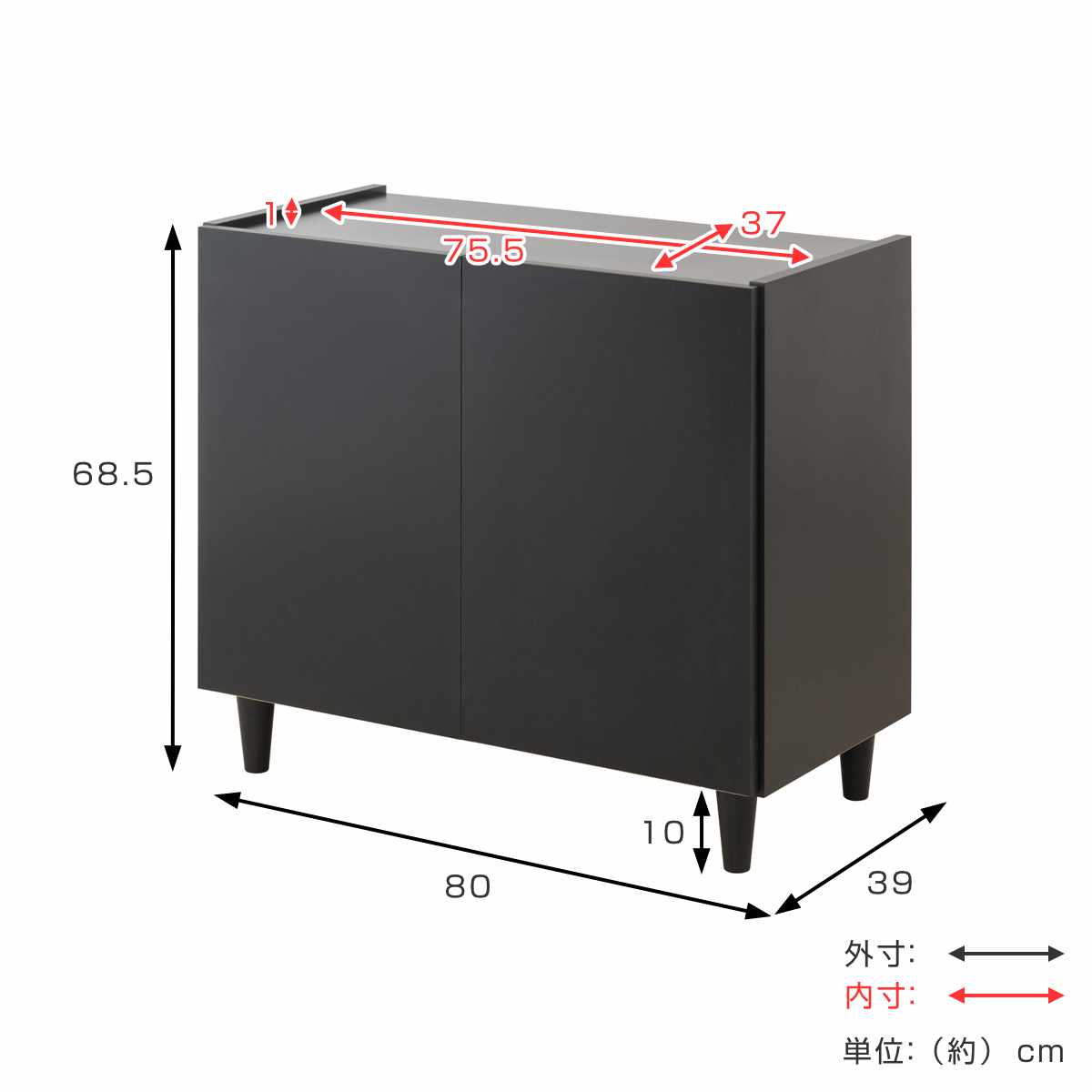 キャビネット 幅80cm モノトーン 日本製 完成品 ( Shadow 棚 ラック 収納 扉付 両開き 可動棚 リビングボード リビング収納 食器棚 家具 配線穴 ブラック シンプル )