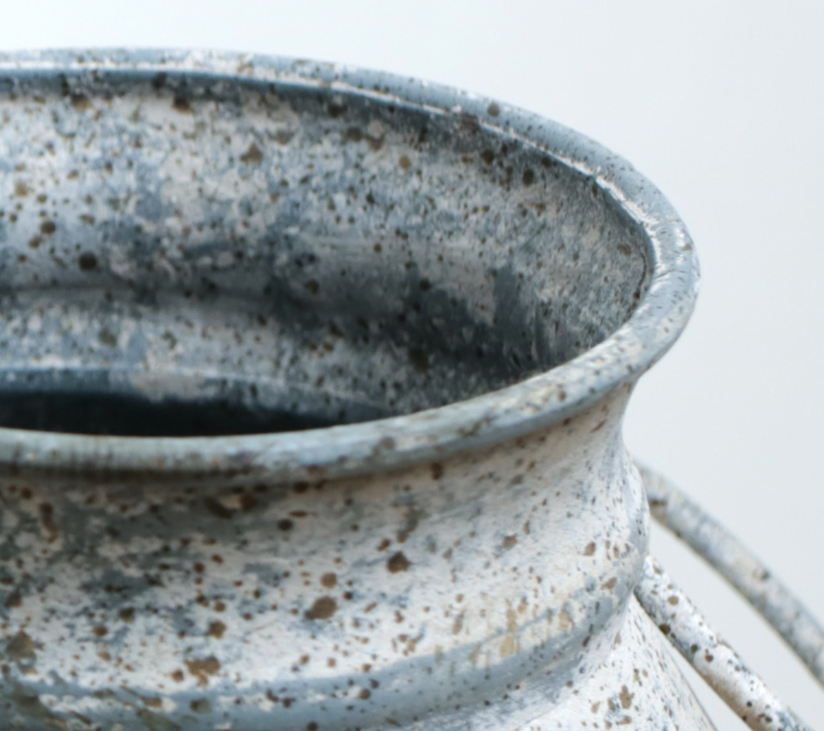 ヴィンテージ加工が施された存在感抜群のミルクカン。お庭のアクセントとしてそのまま飾ったり、スワッグを飾ったり、玄関で傘立てとしてのご使用もおすすめです。