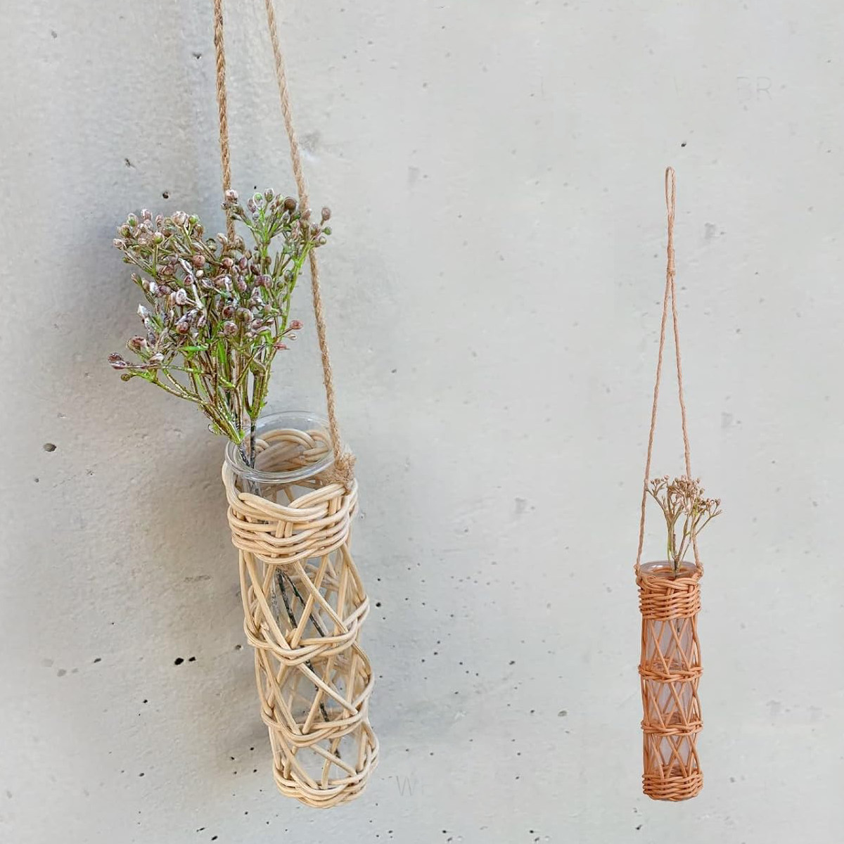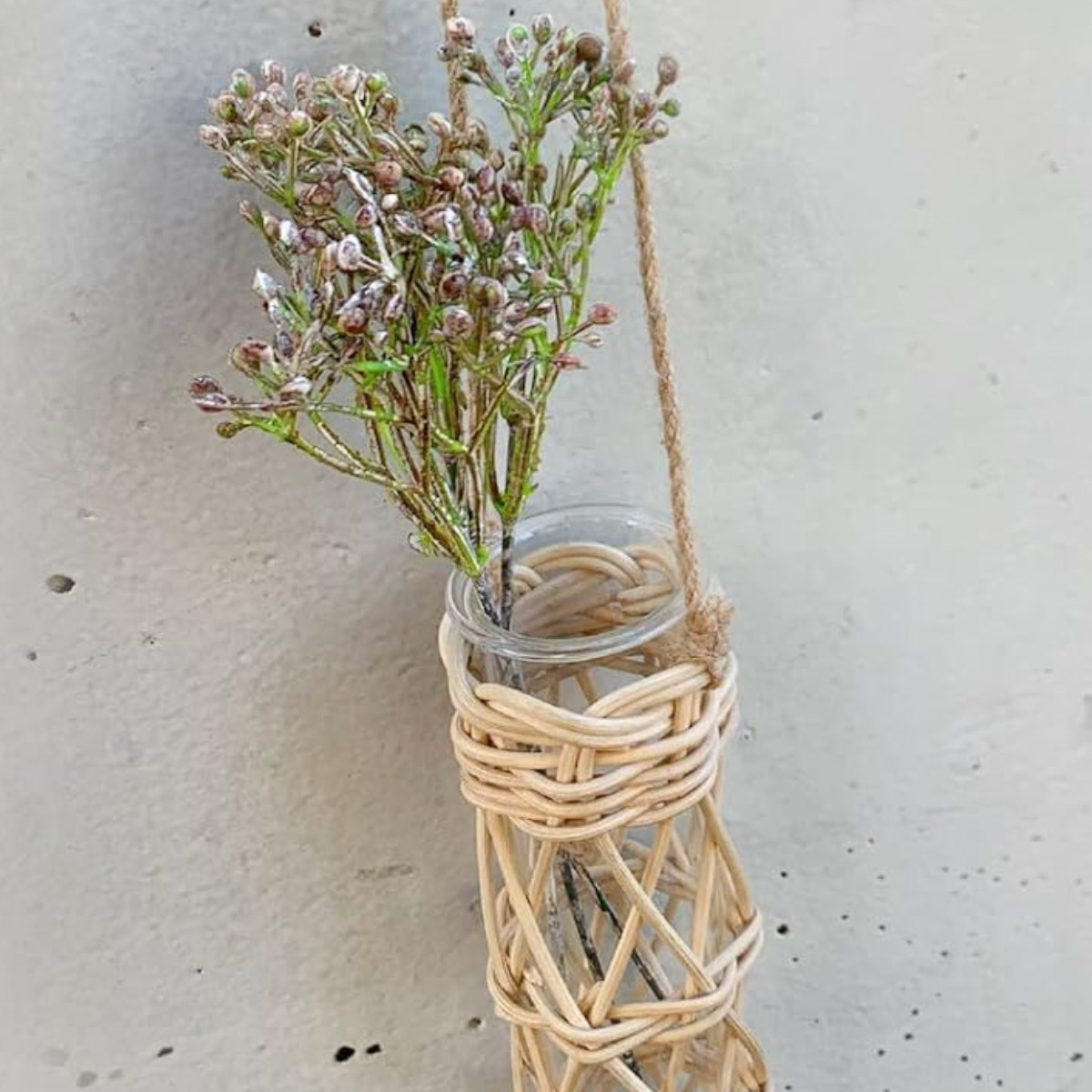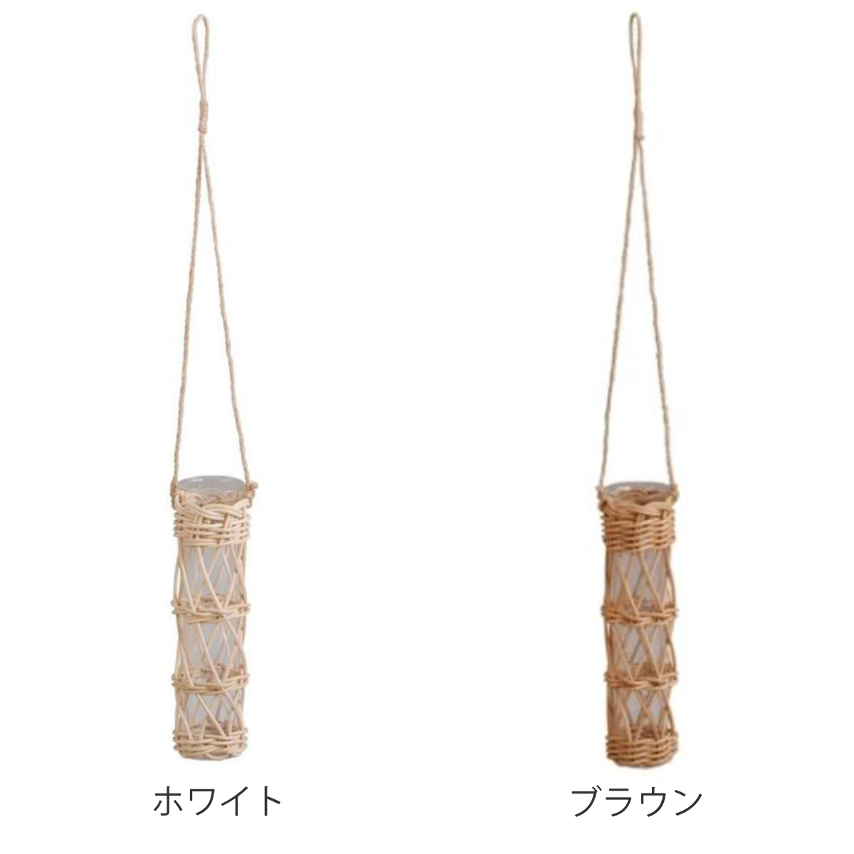 花瓶 ラタン ガラスチューブ ( かご カゴ 天然素材 ガラス ハンギングベース ハンギング 吊り下げ フラワーベース ガラスベース 花びん 観葉植物 室内 ハンギングバスケット ハンギングプランター ラタンバスケット つりさげ ) 【ホワイト】