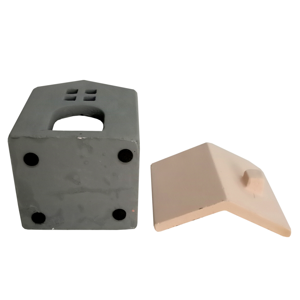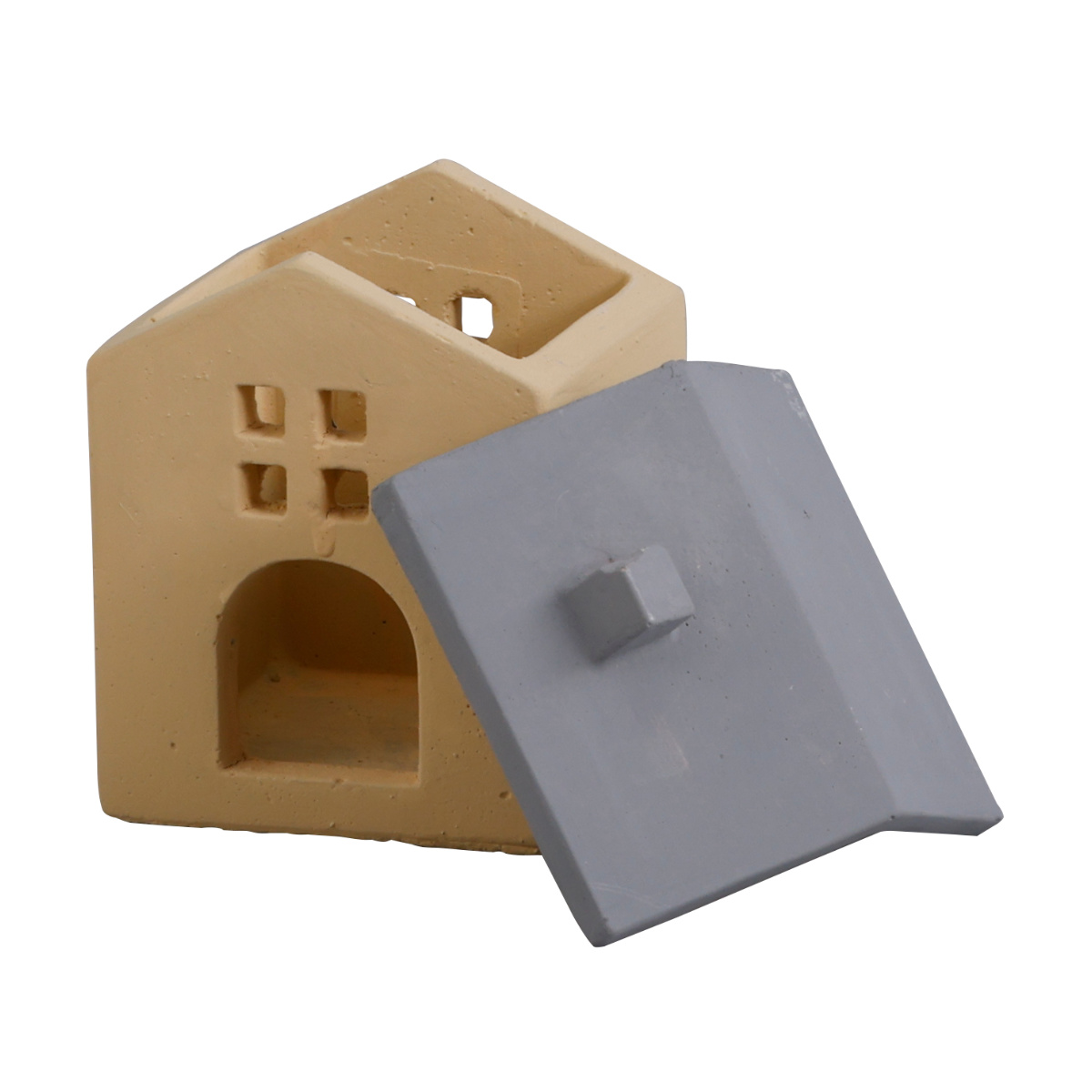 屋根は取り外しが可能です。また、屋根とお家の底には滑り止めが付いているので滑り落ちることが無く、飾っていても安心です。