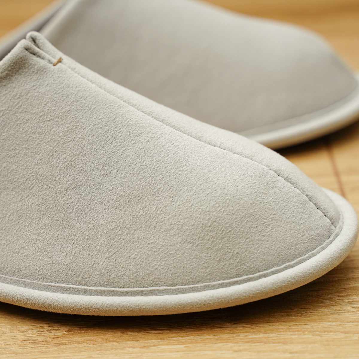 リサイクルPETを用いた東レのスエード調人工皮革、Ultrasuedeを採用した「room's」シリーズの、easyWASH(イージーウォッシュ)です。高級感のある肌触りと美しい発色。優れた耐久性を兼ね備えた極上のスリッパが完成しました。