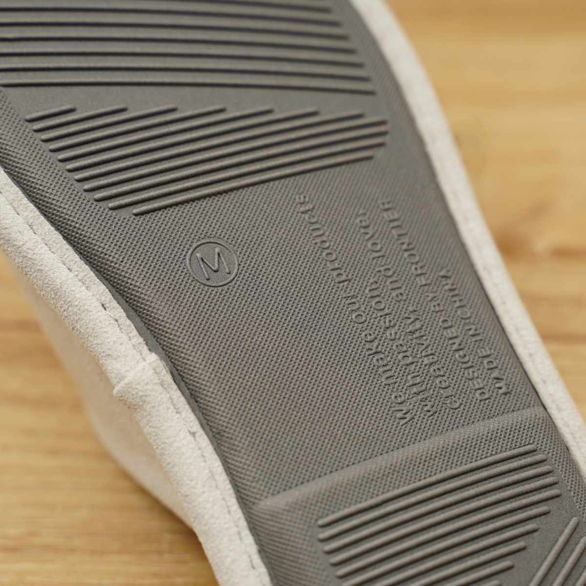 甲の芯材にメッシュ素材を使用しています。甲材、芯材、甲裏材と通気性のあるマテリアルがスリッパ内の不快な蒸れを軽減します。