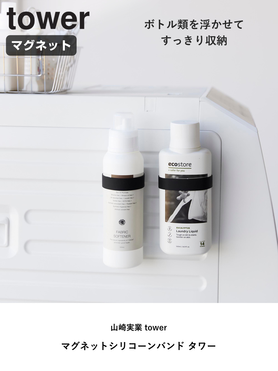 山崎実業 tower マグネットシリコーンバンド タワー ( 4903208013086 タワーシリーズ シリコーンバンド シリコンバンド シリコーン バンド 磁石 マグネット 浮かせる収納 浮かせて収納 収納 シリコーン製 ボトル 水筒 洗剤 ) 【ホワイト】